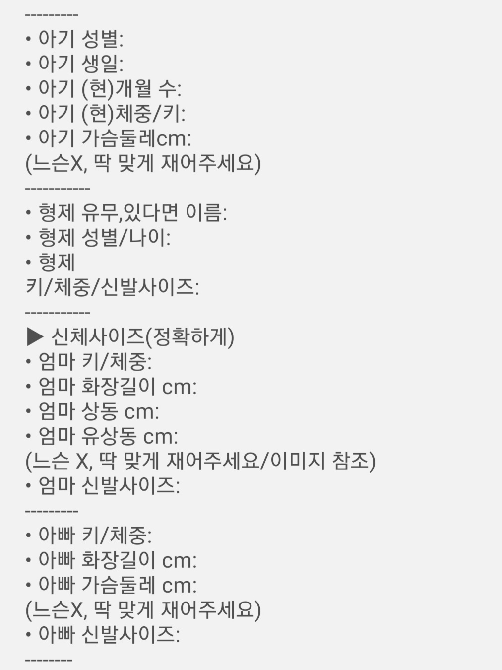 한복 사이즈 때문에 예약 할 때 이렇게 자세한 사항을 작성을 해야 하더라구요.