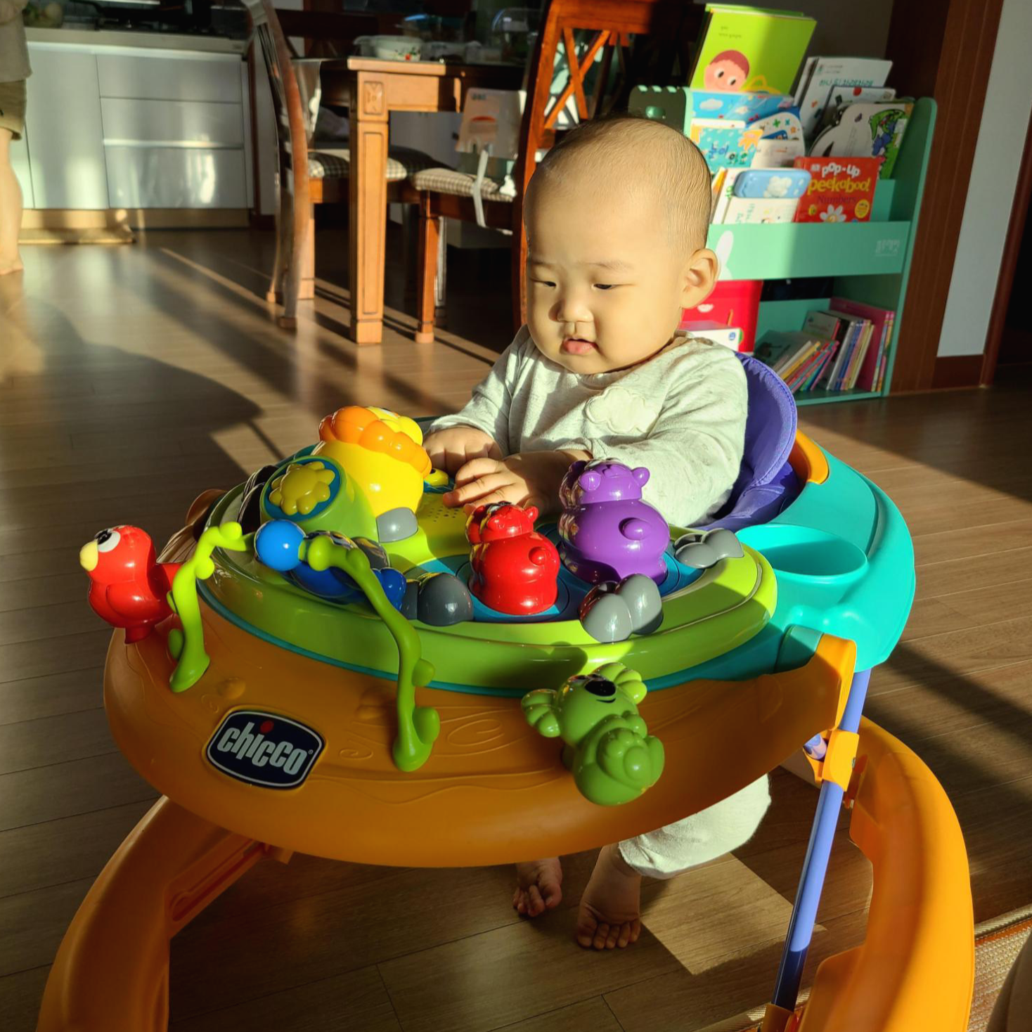 보행기는 척추에 안 좋다고 안 태우려고 했는데