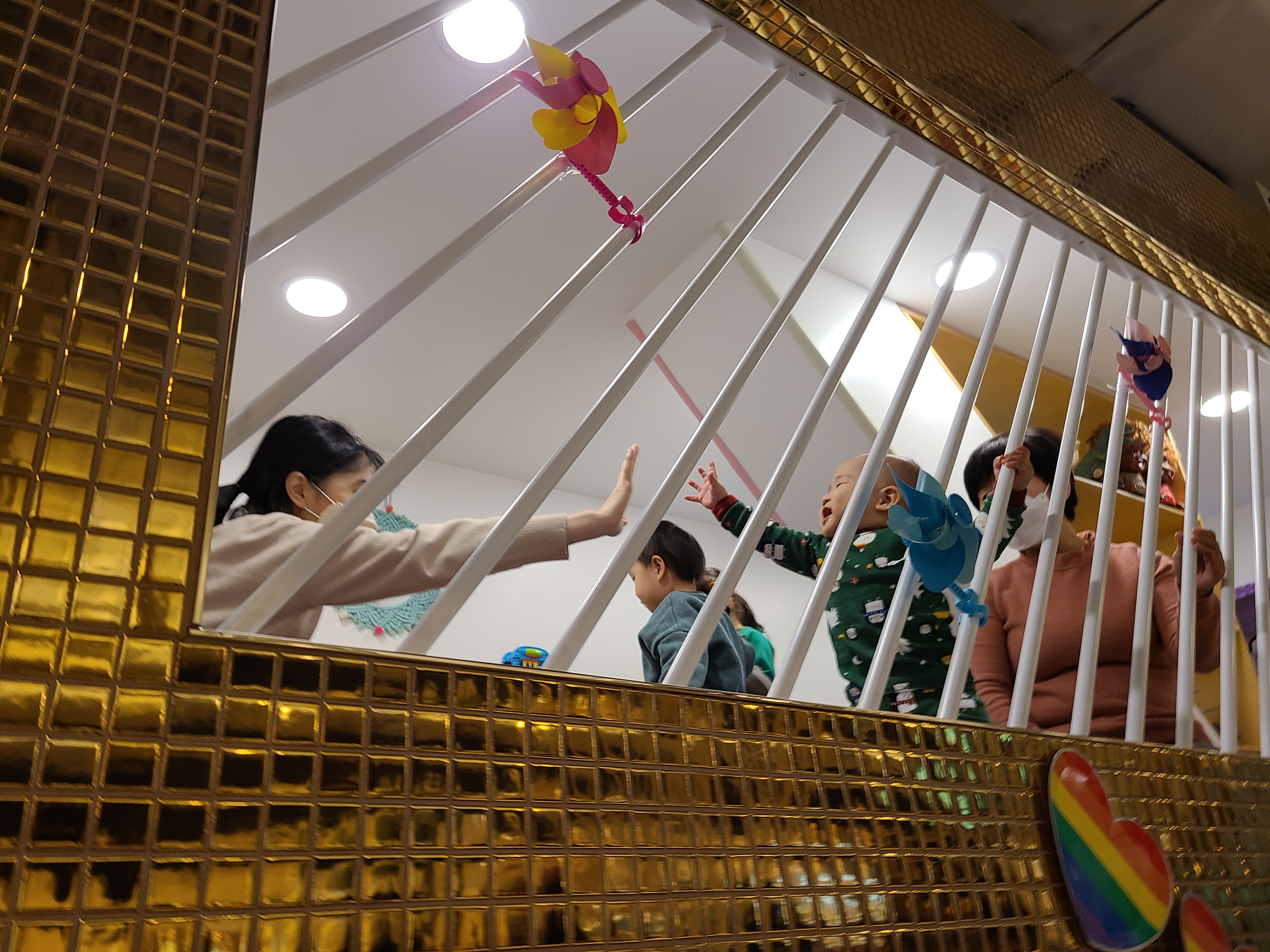 키즈 카페 갔더니 다른 엄마랑 하이파이브 하고 있구요..