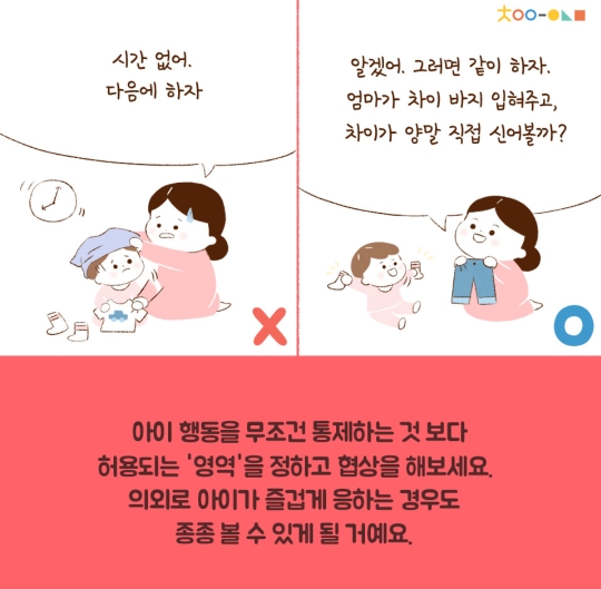 '안돼'를 너무 많이 하게되면 해도 되는 것과 되지 않는 것의 영역이 모호해져서