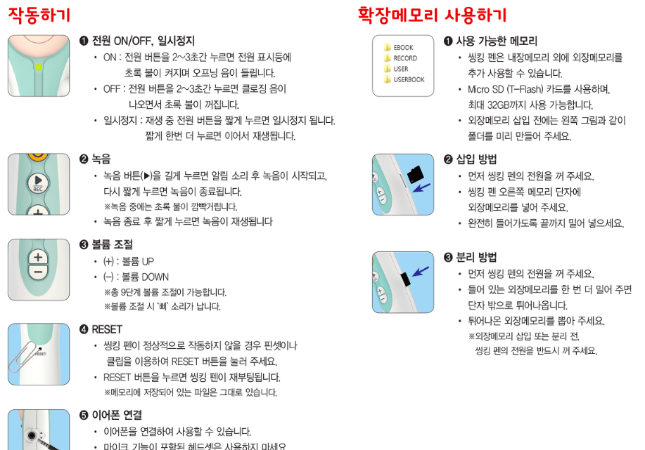 씽킹펜은 8Gb까지 저장이되고, 외장 메모리카드로 32Gb까지 확장 가능해요.