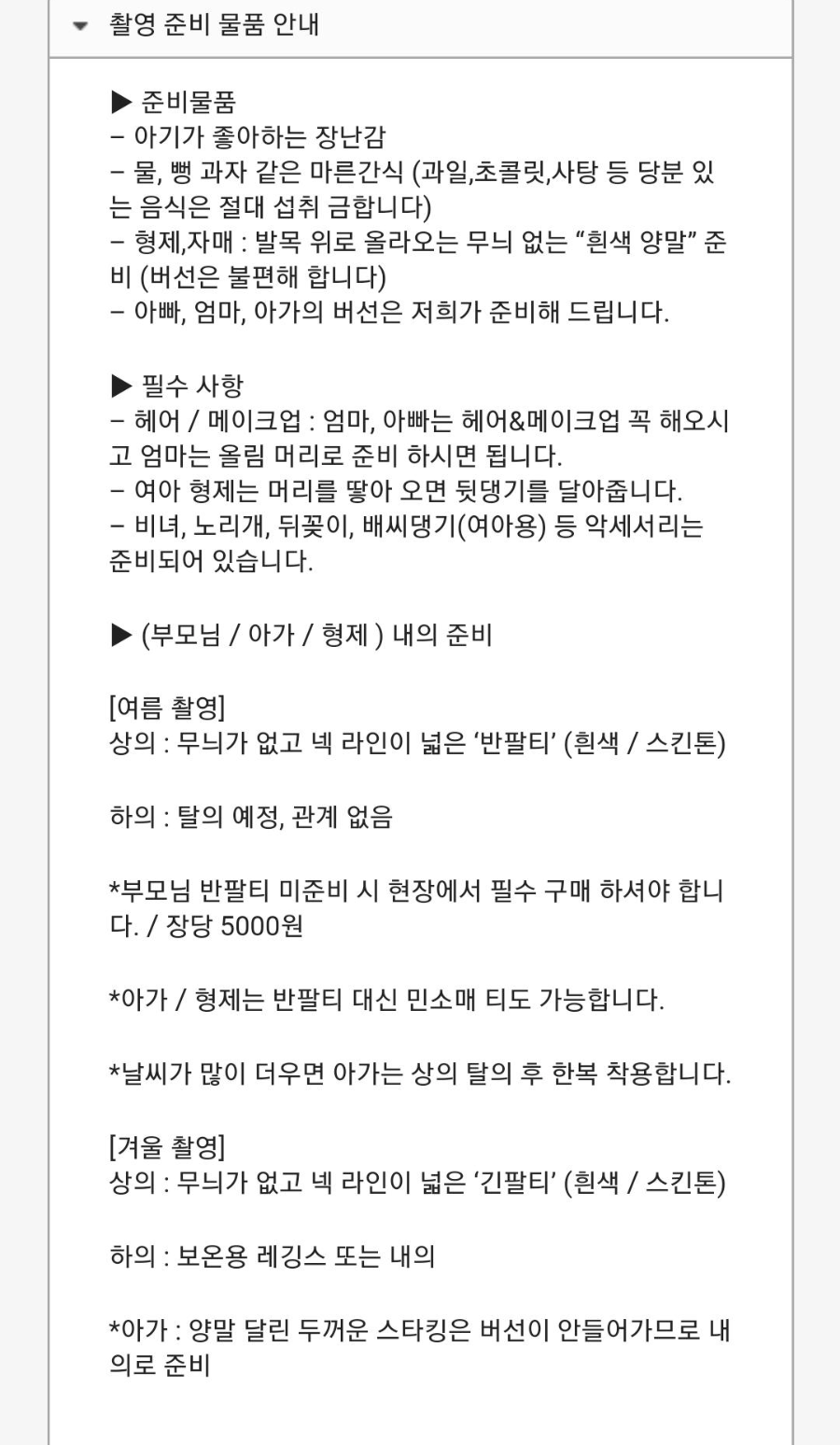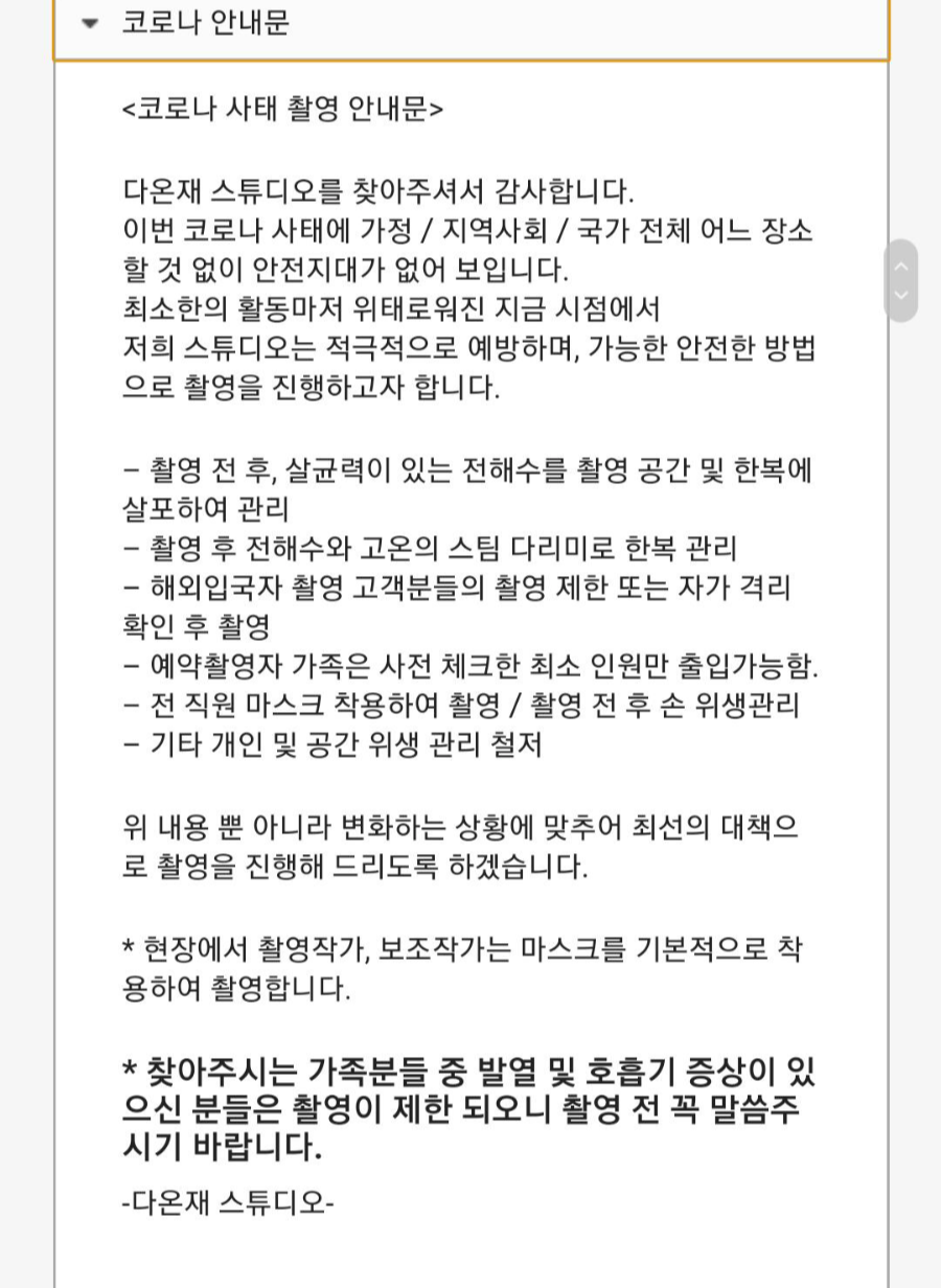 ※ 금박이 있는 한복은 관리비로 3만원, 아기는 2만원 추가금액이 있었어요.