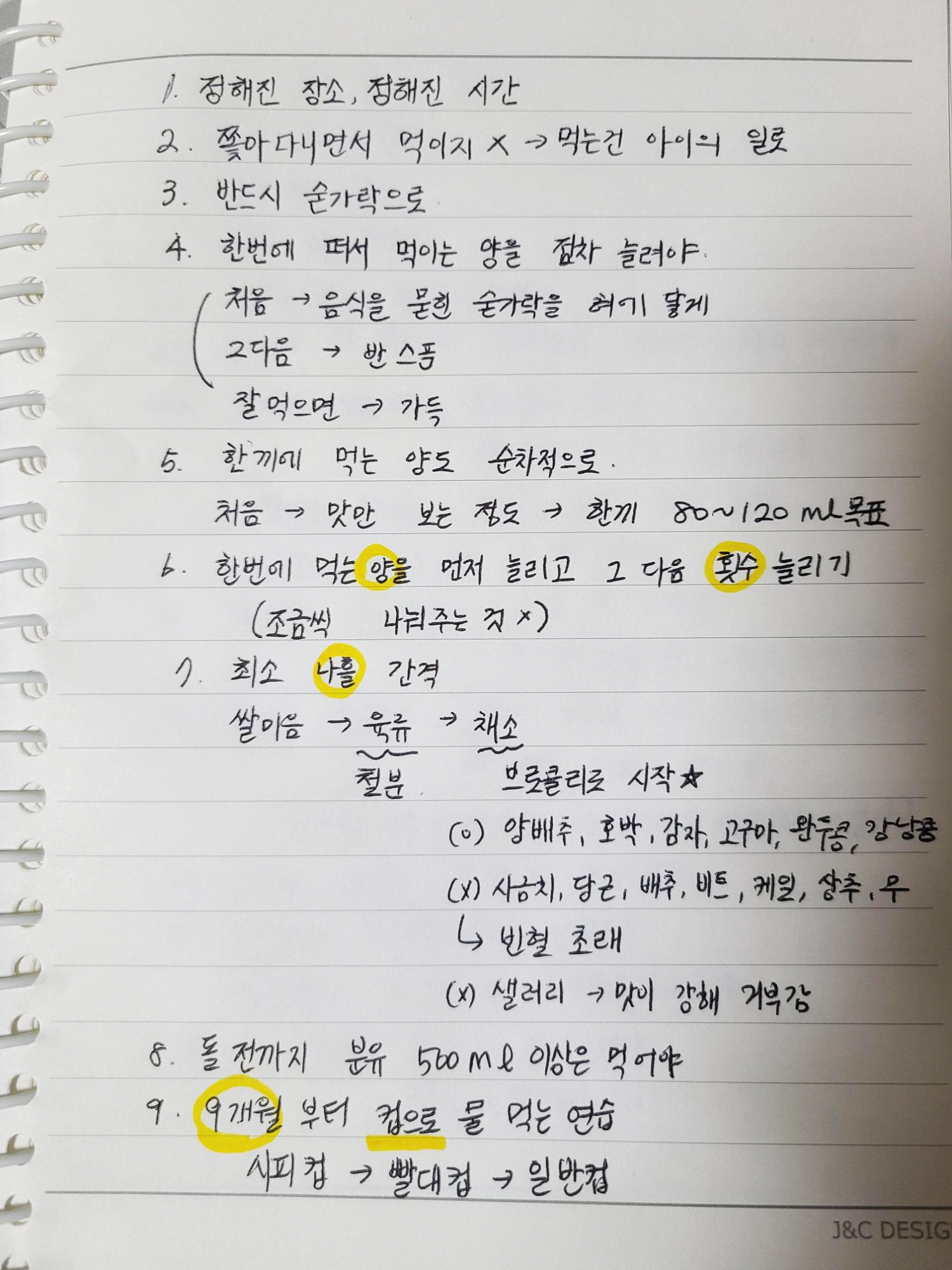 저는 이유식에 관한 부분들을 정리하며 읽었는데 필요하신분들은 참고하세요.