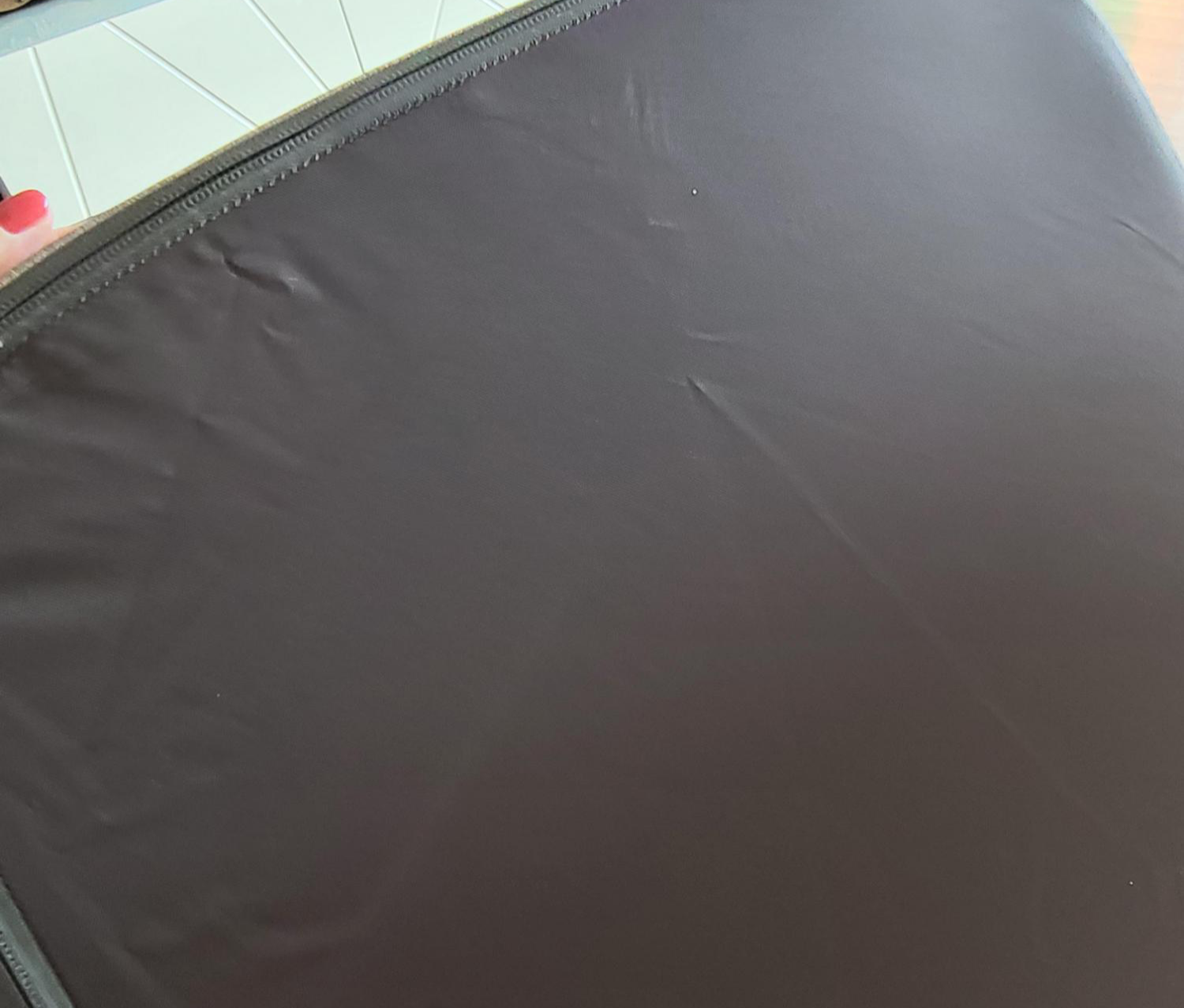 재질은 천으로 보이지만 만져보면 비닐같은 재질이라고 설명하면 될까요?