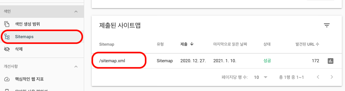 2. 좌측 카테고리에서 Sitemaps를 클릭, 우측에서 싸이트맵을 클릭합니다.
