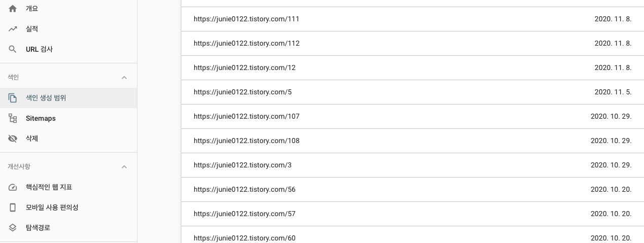 구글 써치콘솔에서 싸이트 색인을 검색해보니 제 블로그 글 중 상당부분이 색인에서 제외되었어요.