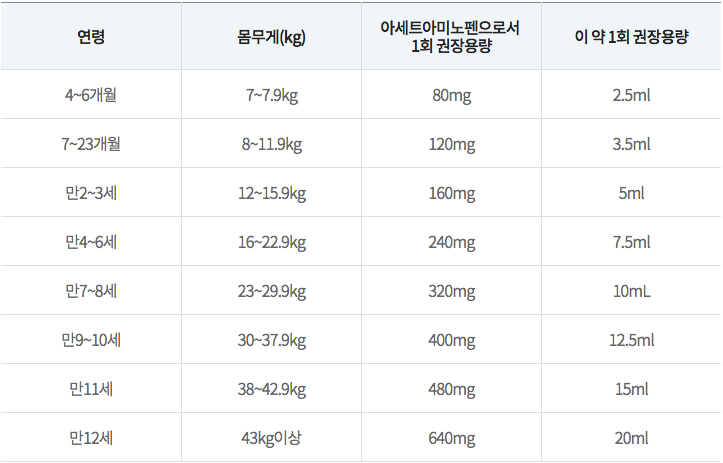 약상자에 1회 권장량을 4~6시간마다 먹이되 2세 미만 아기는 의사, 약사와 상의하라고 되어있거든요.