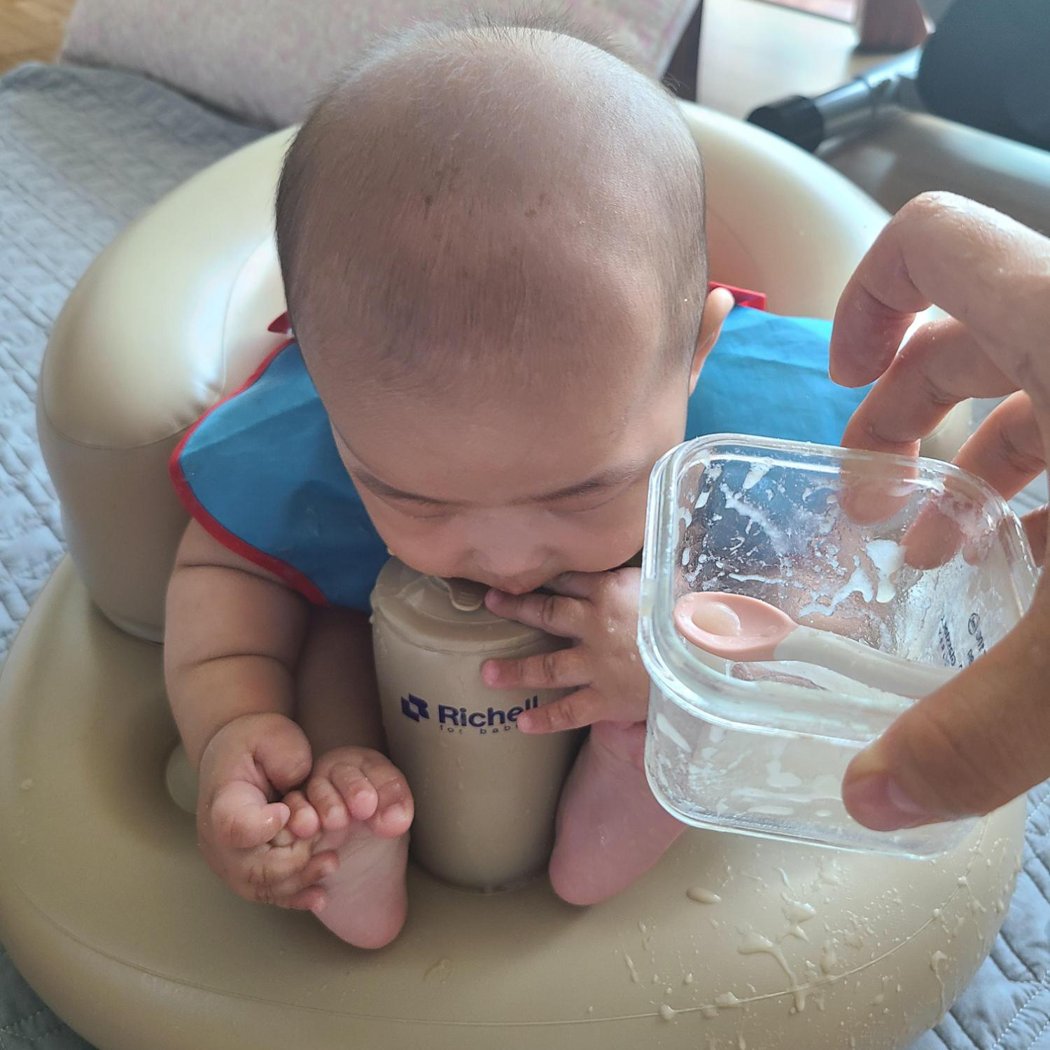분유를 먹이고, 트름을 시키고, 옷을 갈아 입히고, 구강티슈로 입 안을 닦고 나서야 이유식 시간이 지나갑니다.