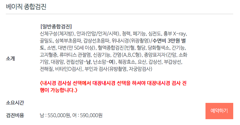 다른 병원들이랑 비교해보니까 구성과 검진 비용이 거의 다 비슷비슷했어요.