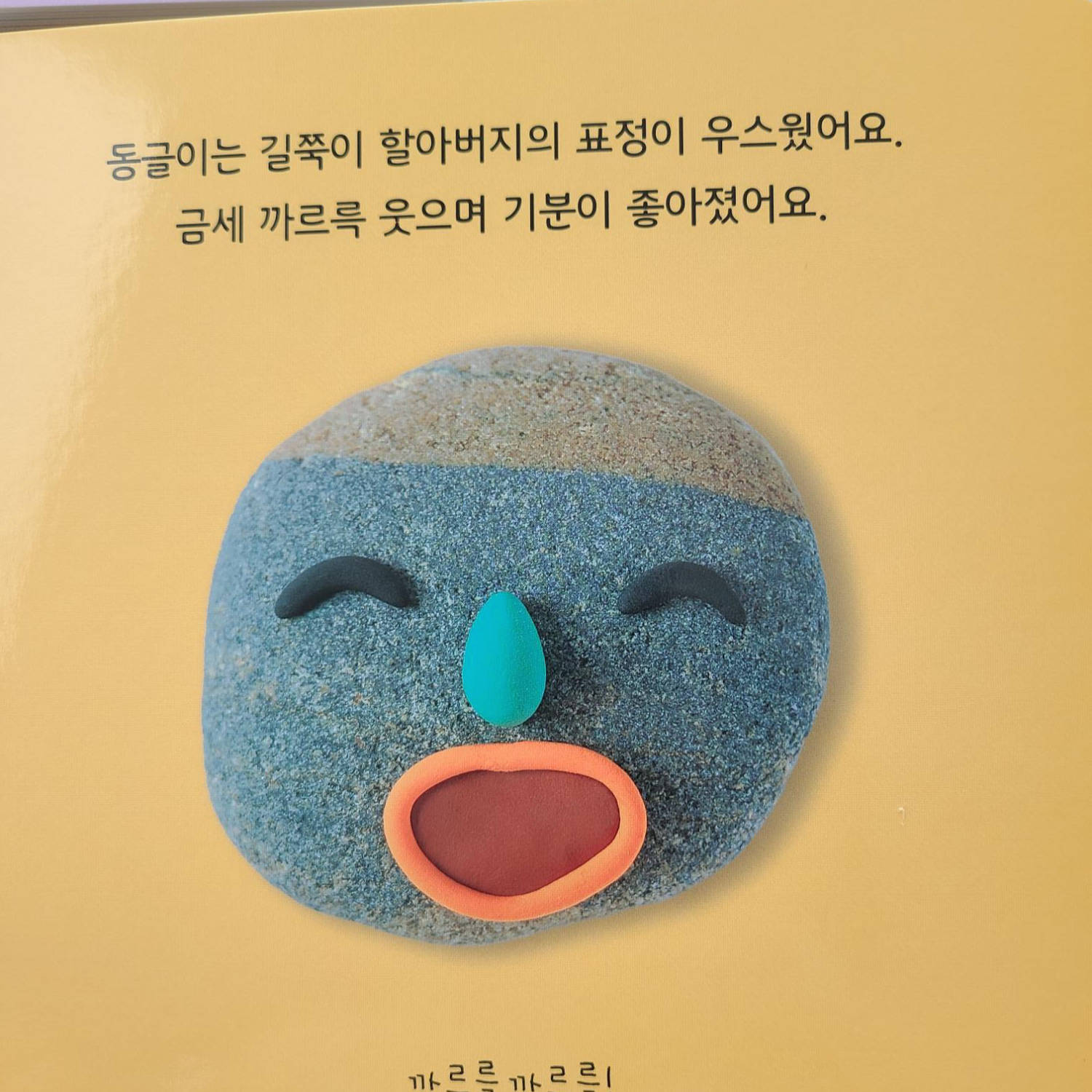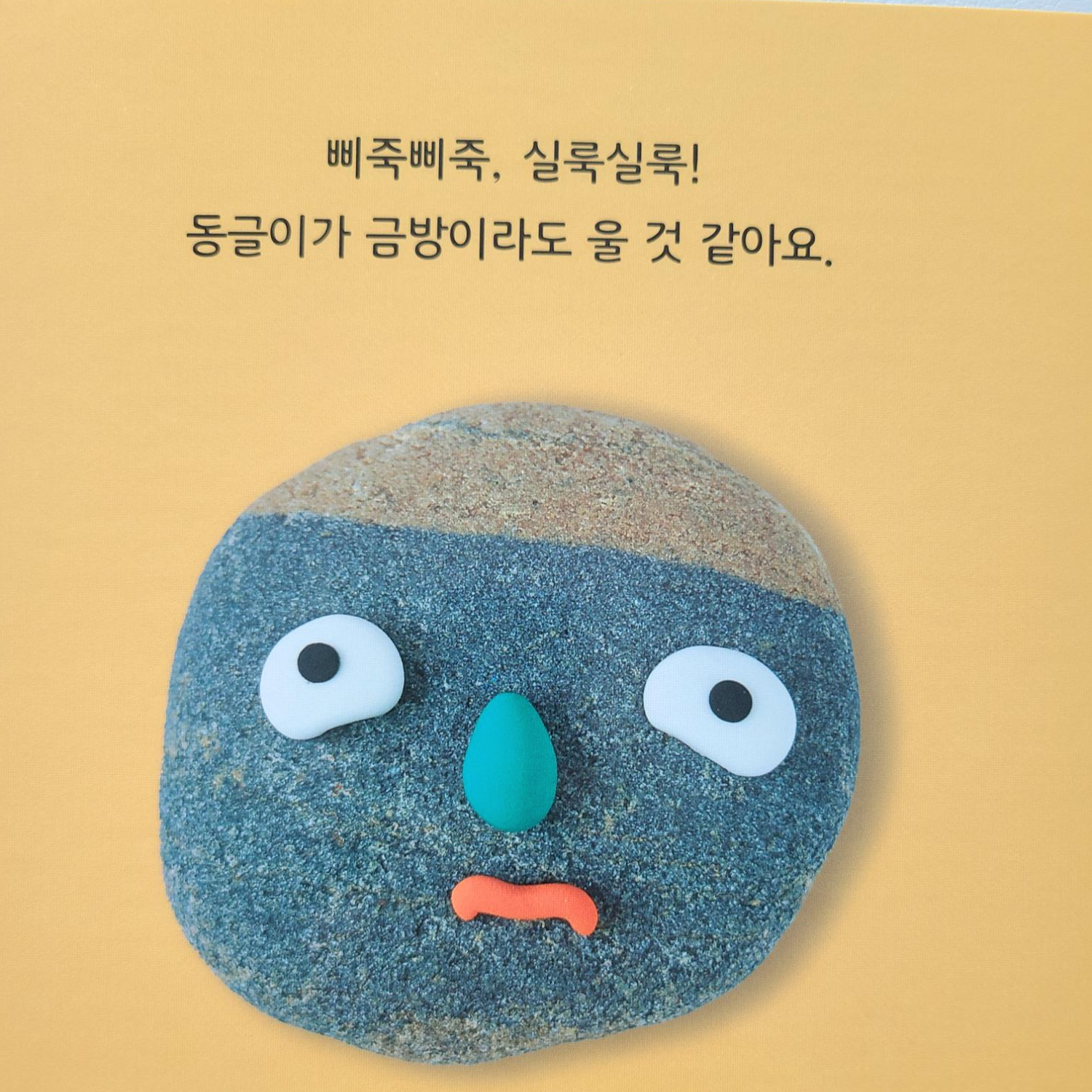 그림으로 표현하지 않고 조약돌과 점토를 이용하여 최대한 간결하게 표정에 포커스 할 수 있게 해두었고