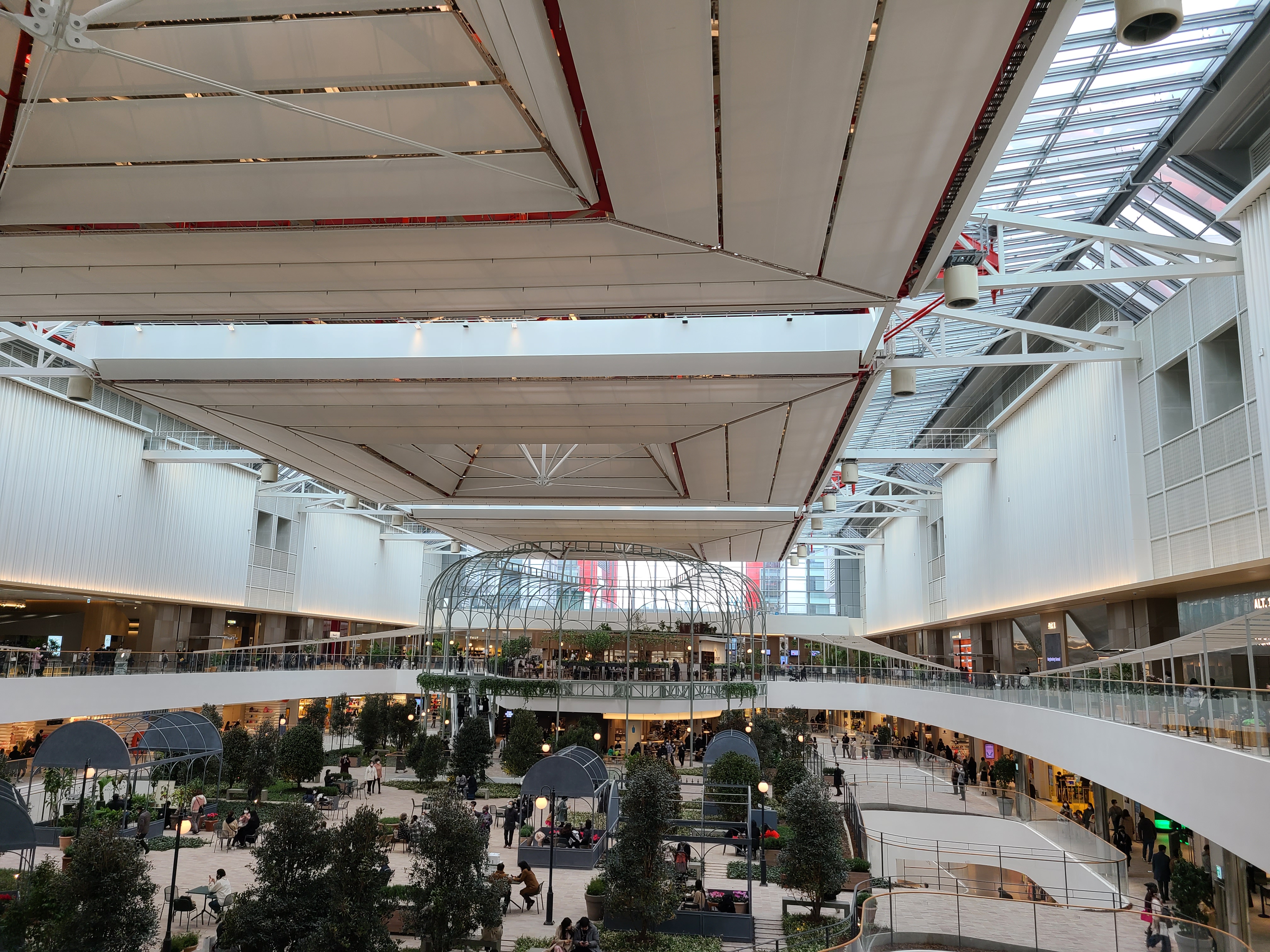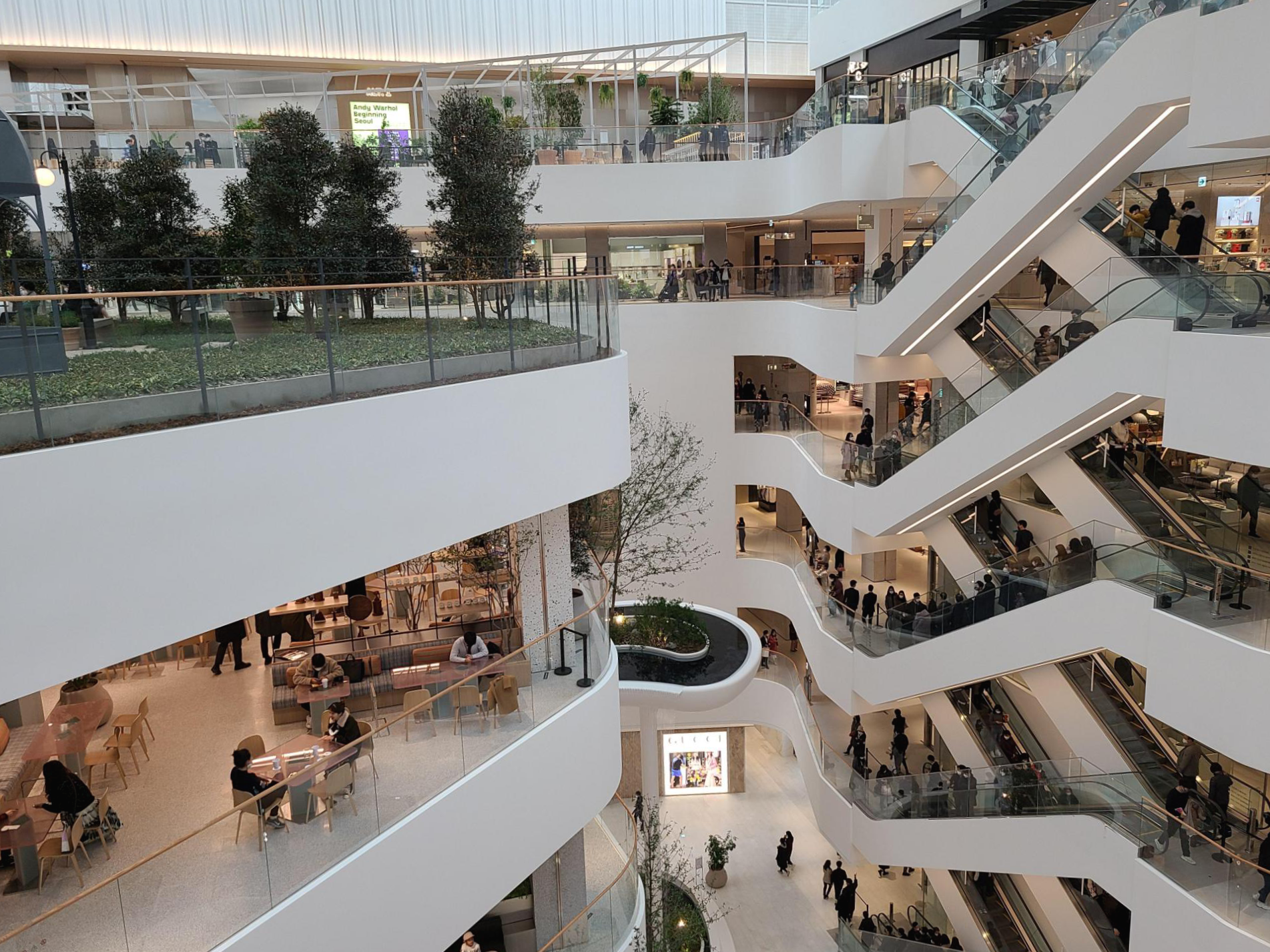 백화점엔 창문을 만들지 않는게 불문율인데, 더현대서울은 통유리창이 있어서 햇볕보면서 쇼핑할 수 있어요.