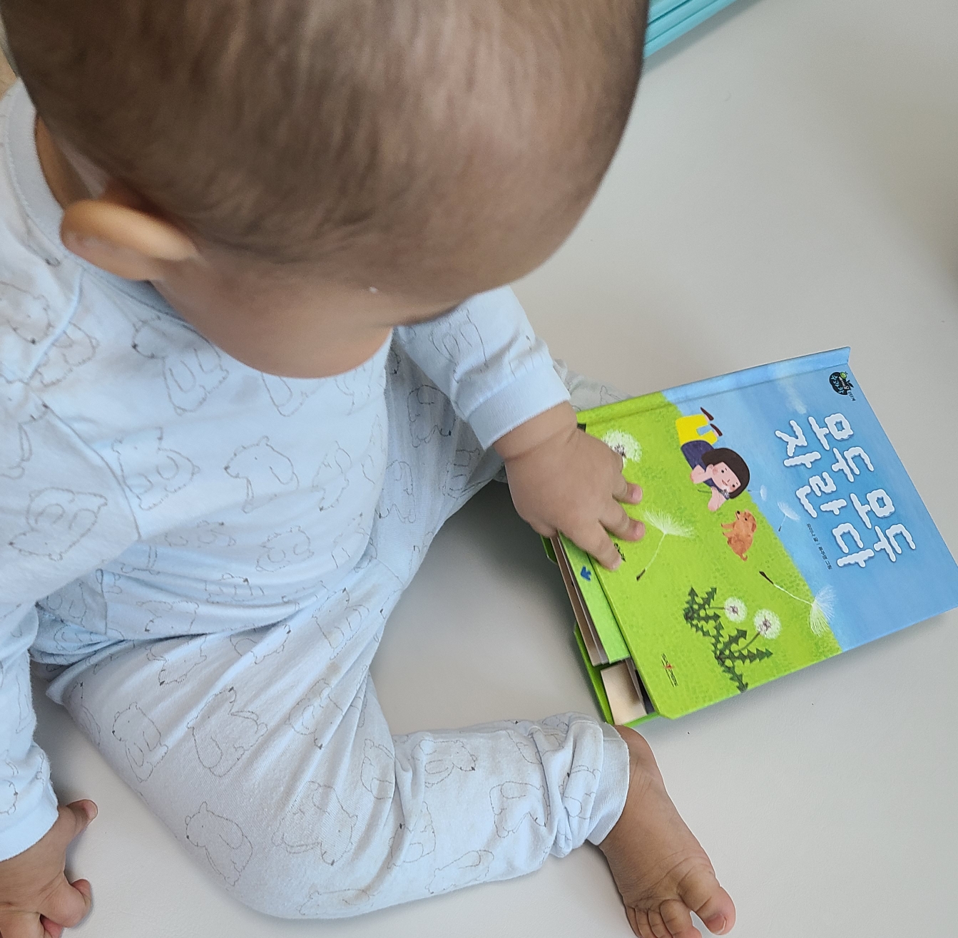 고사리 손으로 어렵사리 책 펼쳐서 보는 것 보면 신기해서 연신 사진을 찍게 되어요.