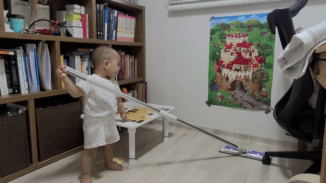 아기가 밀대질 하는거 보더니 남편이 이왕이면 청소되도록 물걸레도 붙여주라고 하네요.