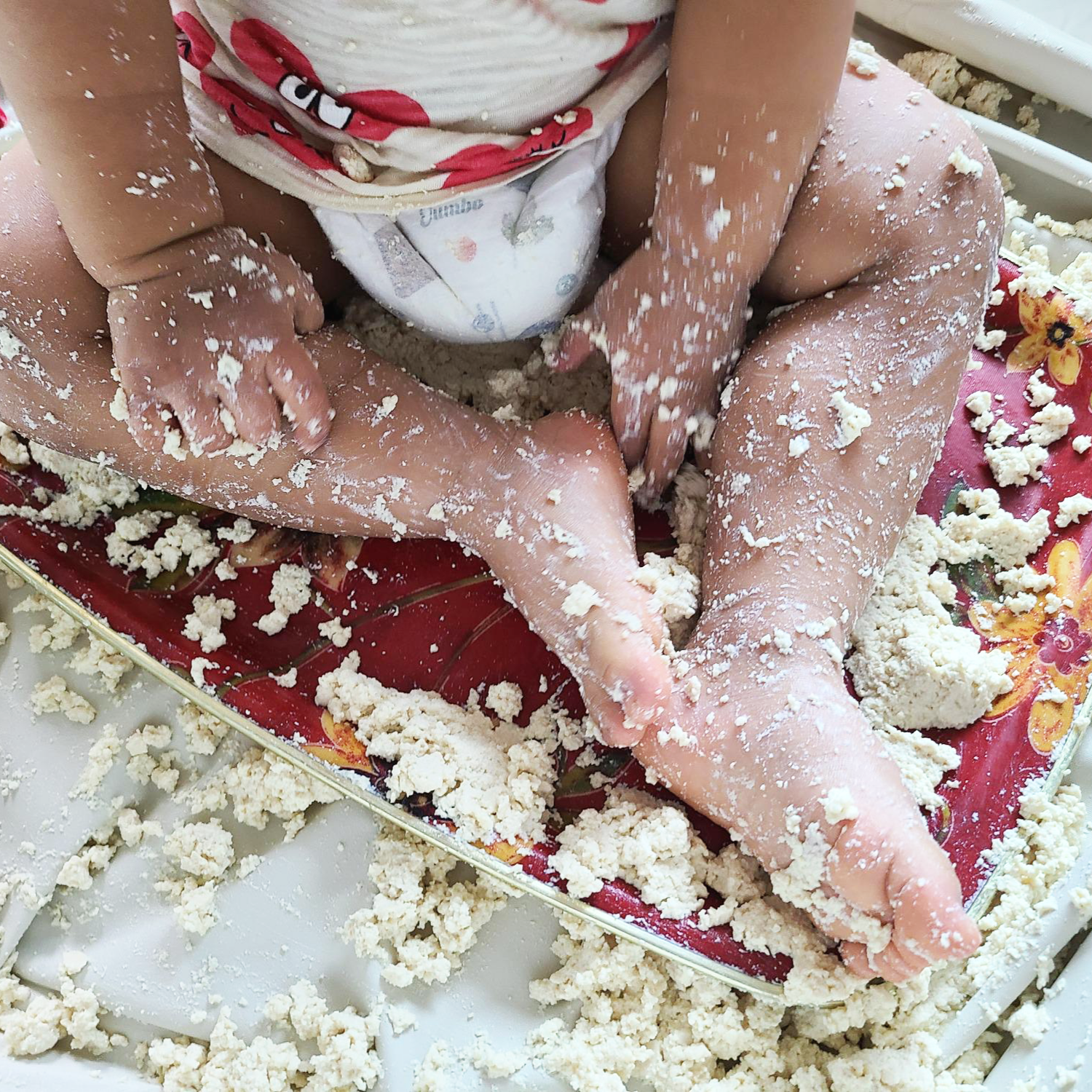 또리는 결국 할머니 덕분에 국산 손두부로 촉감놀이 했어요. 주물럭거리면서 저도 주워 먹고 또리도 먹고 나름 즐거웠네요.
