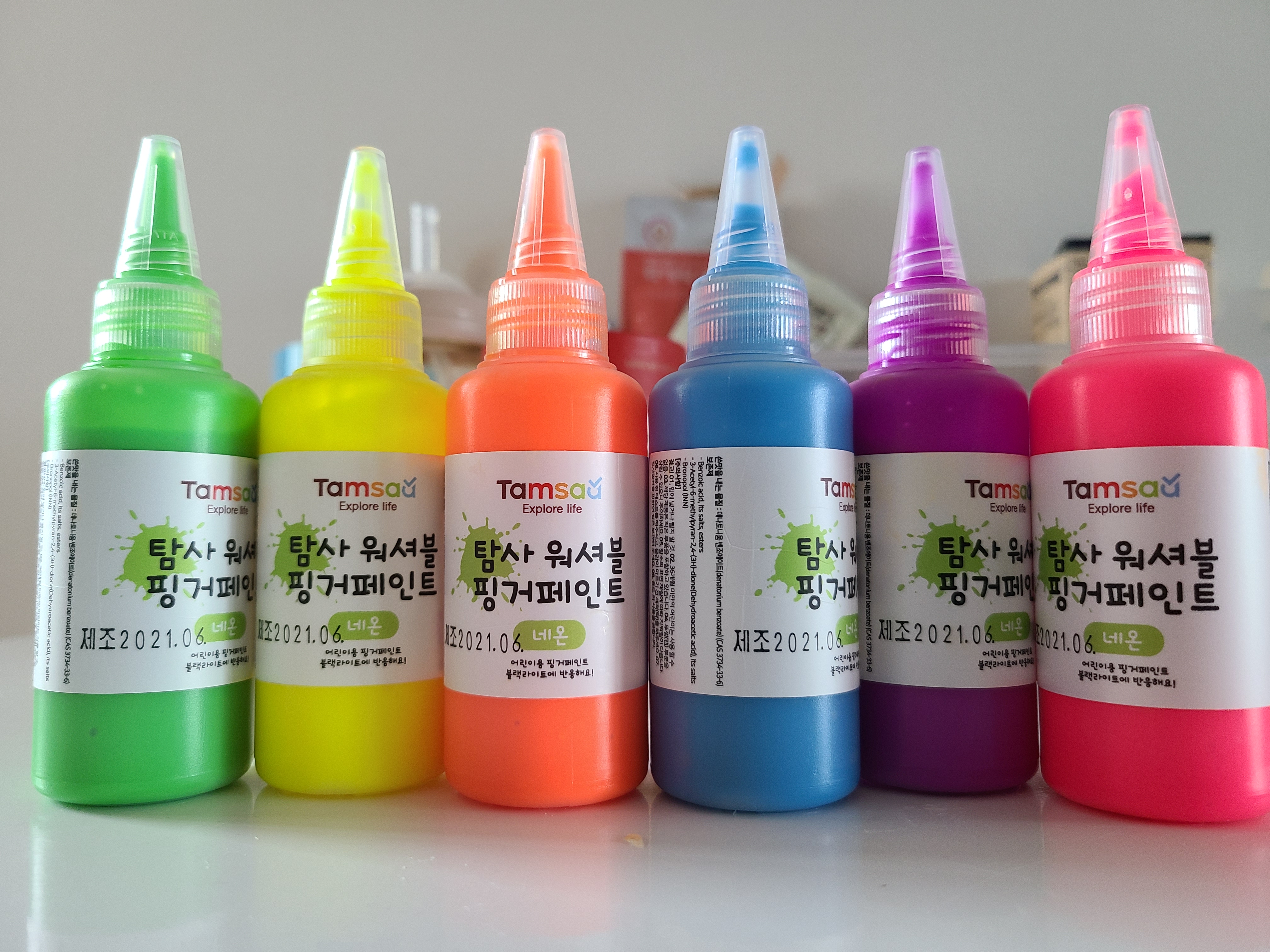 수성물감이라서 물에 닿으니까 고체로 변하면서 싹 씻겨 내려가더라고요. 청소가 수월해서 좋았어요.