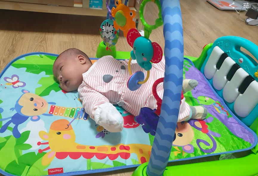 아기가 뒤집기 하기 전 까지는 언제나 옆에 있어준 아기체육관에게 고마움을 전하며