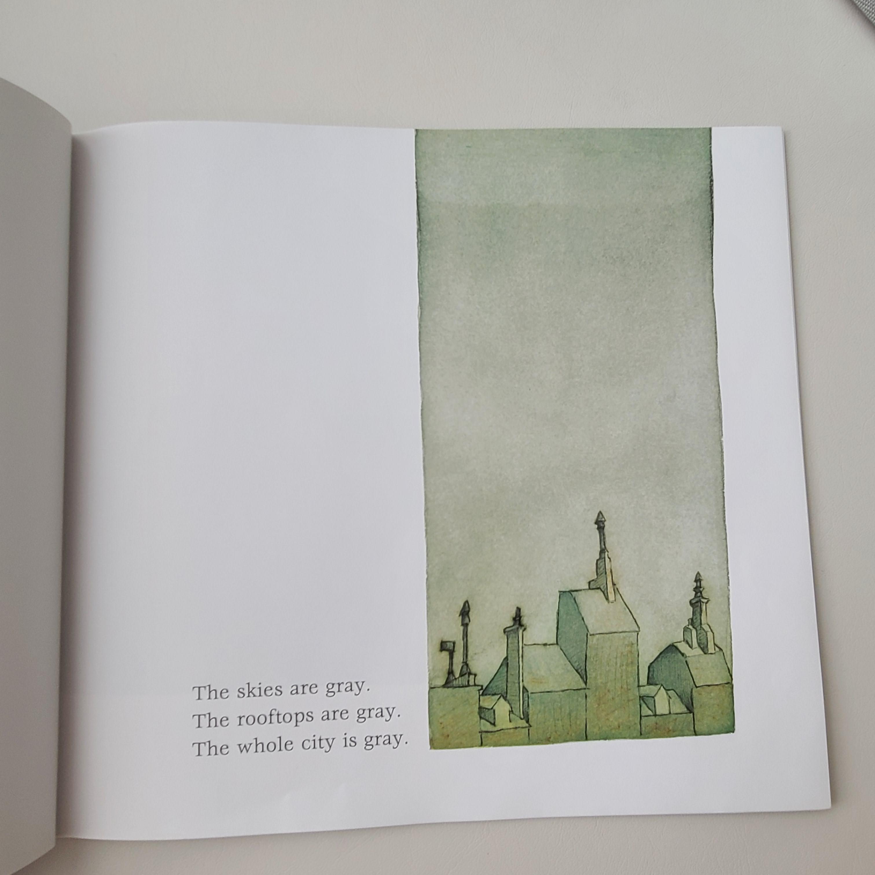책은 회색빛 도시, 회색 지붕, 온통 회색인 도시의 모습으로 그리 밝지 않게 시작돼요.