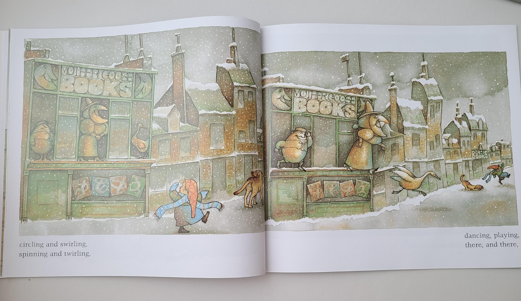 눈이 내리자 마더구스 서점에 진열되어 있던 마더구스 인물들이 하나둘씩 나와서