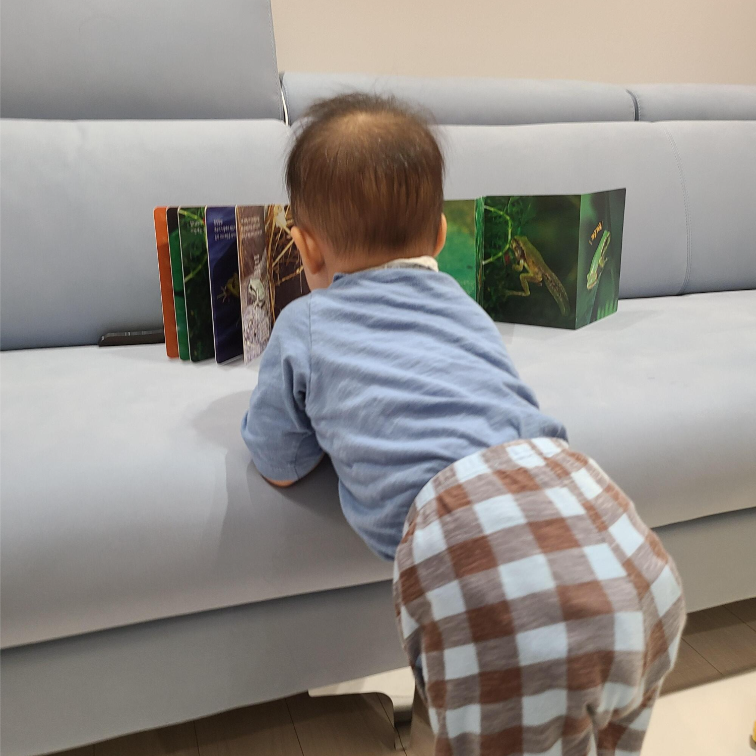 개구리의 생애에 관심이 생겨 한동안 개구리 책을 자주 찾던 아기 궁뎅이가 귀여워서 찍어 본 사진이에요.