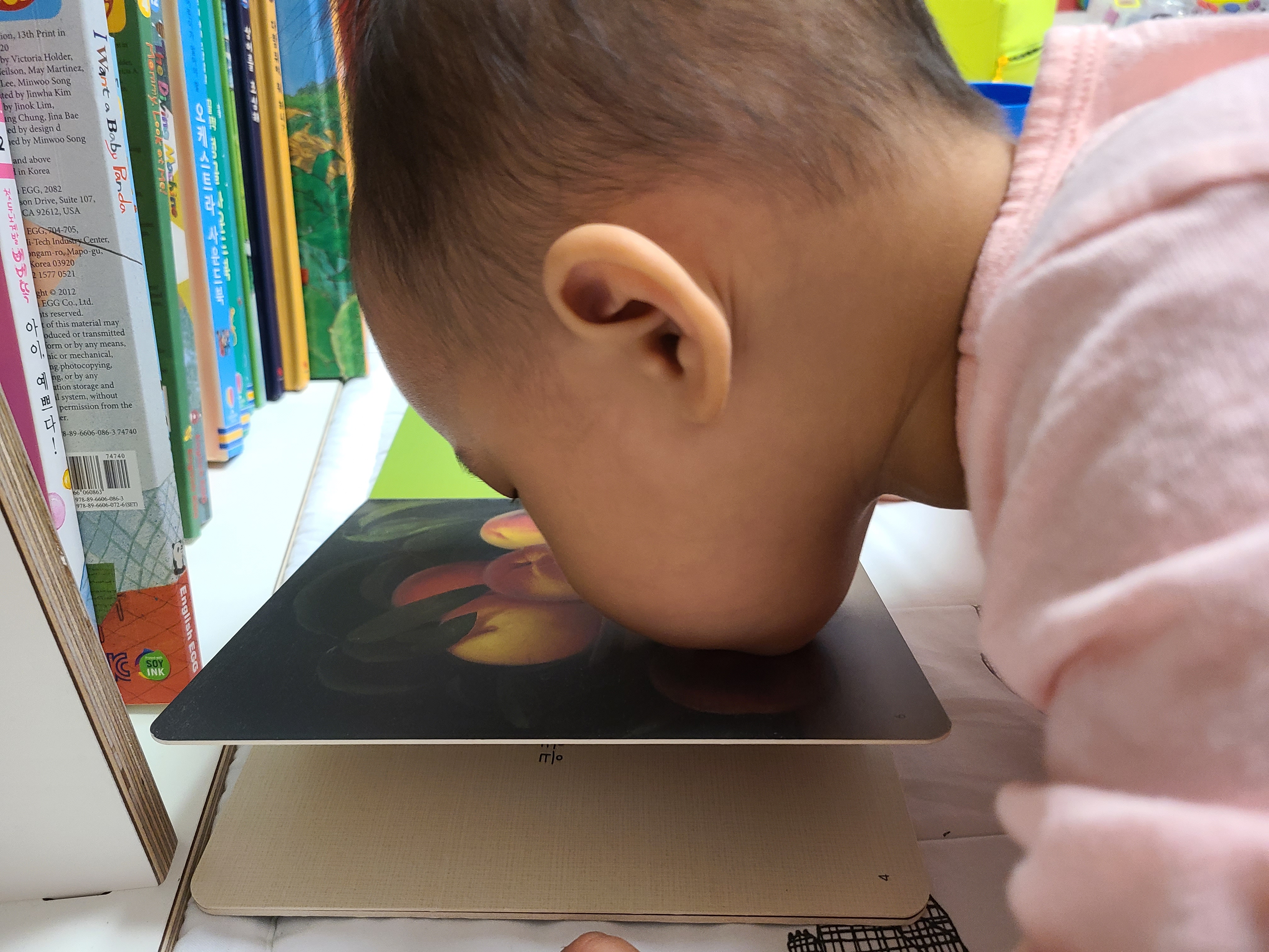 요건 향기 책에 복숭아 향기 맡는 아기 볼따구가 넘 귀여워서 남겨 본 사진.