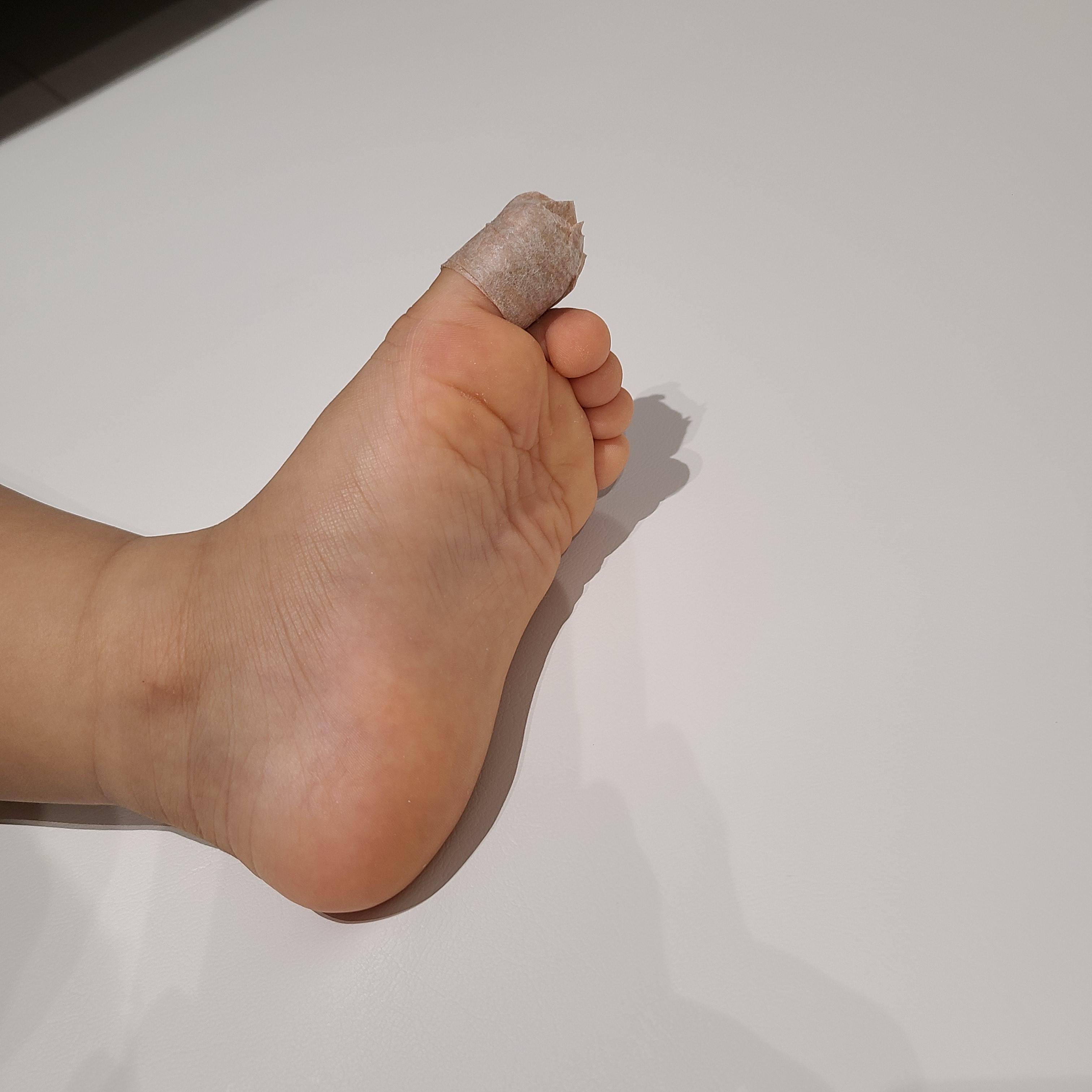 3. 아기가 어리다면 대일밴드를 바른 후에 그 위에 의료용 테이프를 감아줘서 떨어지지 않게 고정해요.