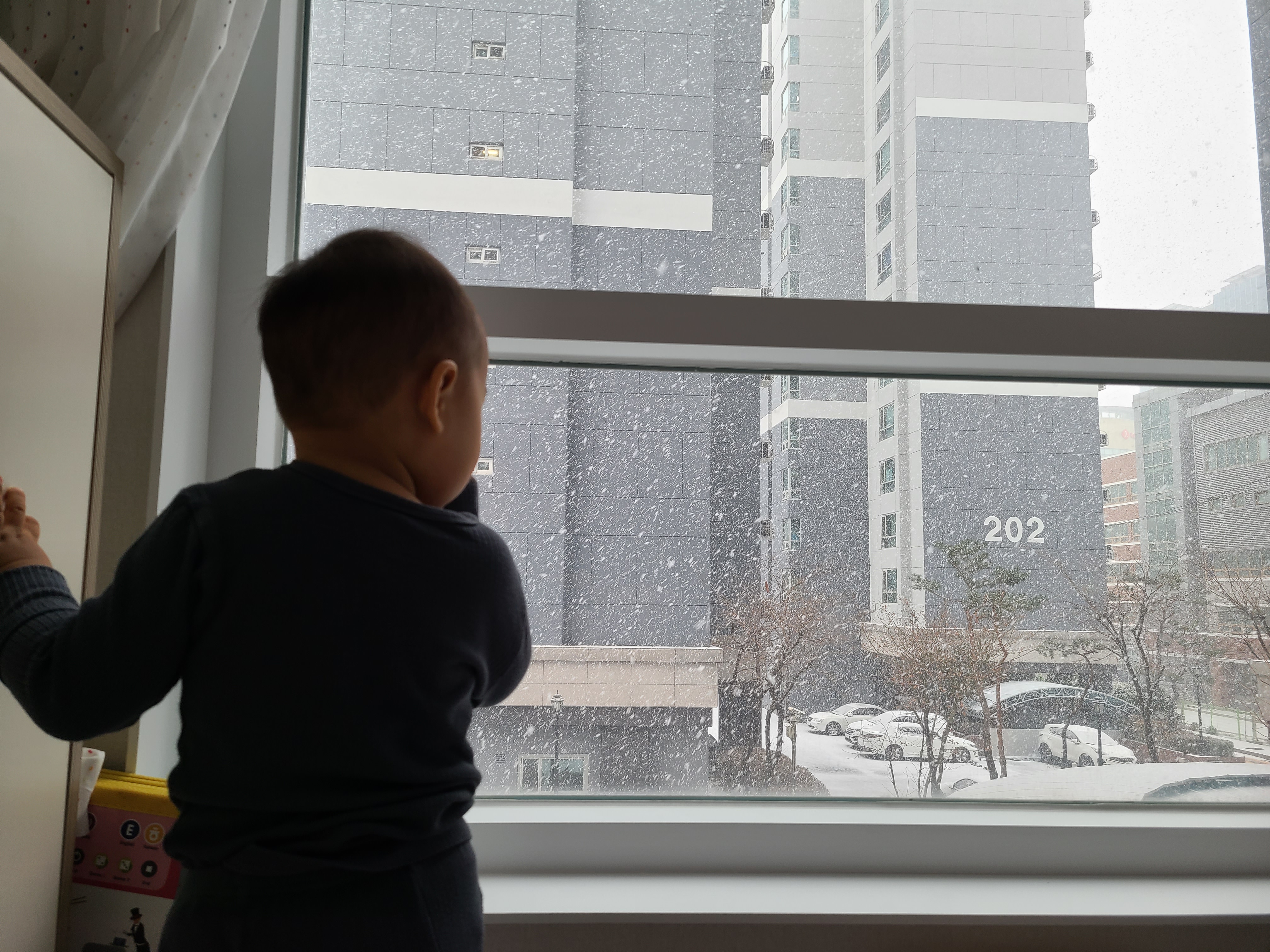 이제껏 아기에게 눈에 관련 된 책을 읽어주면서 눈을 보면 아기가 어떤 반응을 보일까 궁금했었는데 얼마 전 첫 눈이 내렸어요.