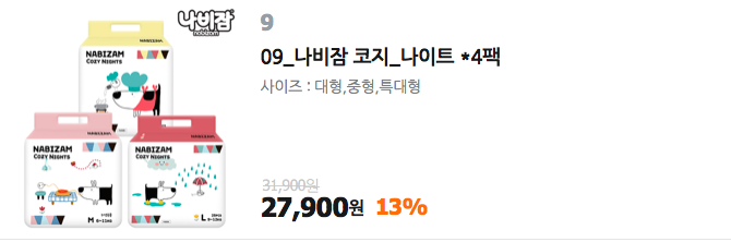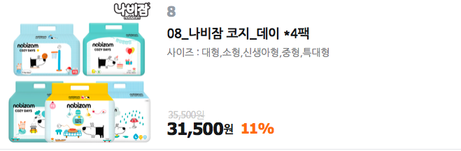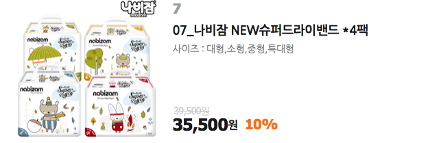 알고보니 나비잠 기저귀 중 제일 인기가 많은 제품이라고 하네요.
