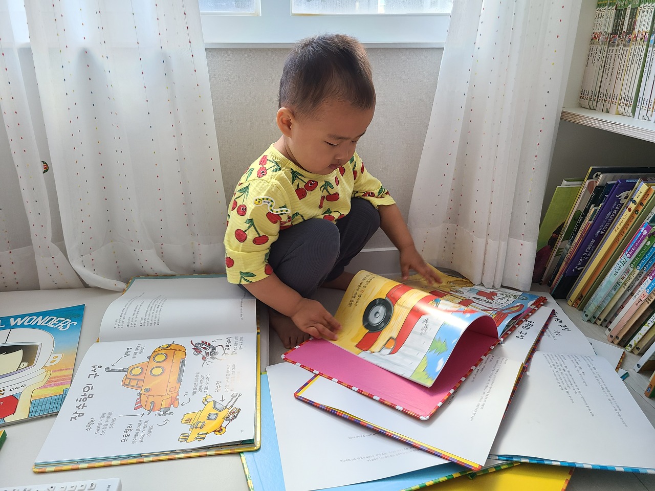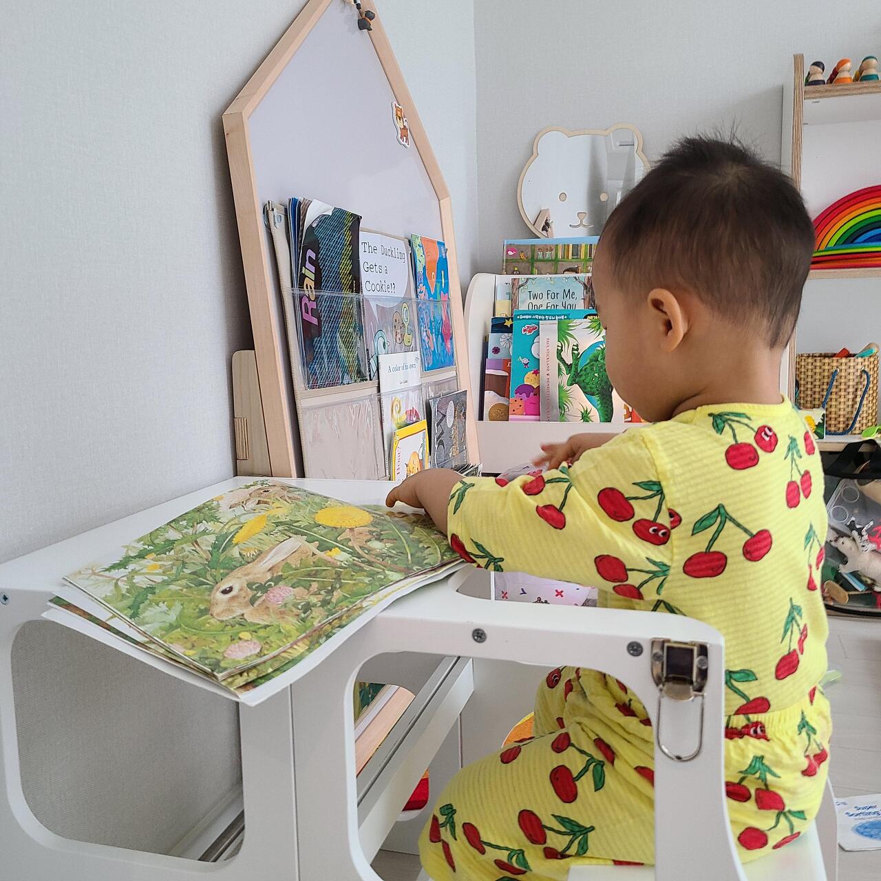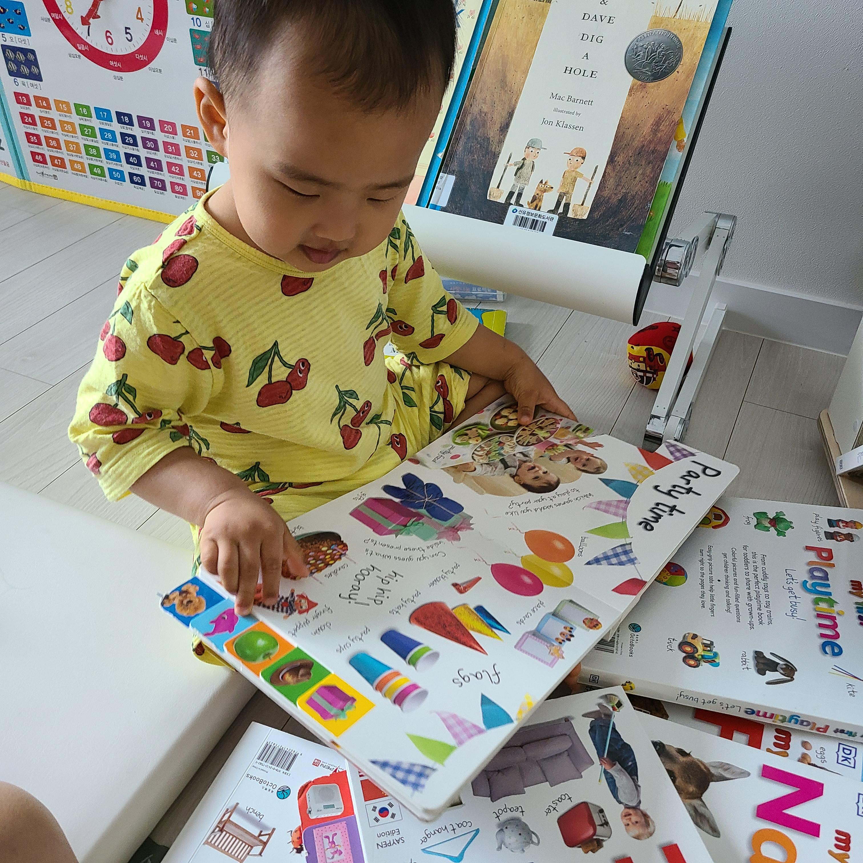 26개월 되니 명확히 나타나는 부분은 첫 번째, 아기의 책 기호입니다.