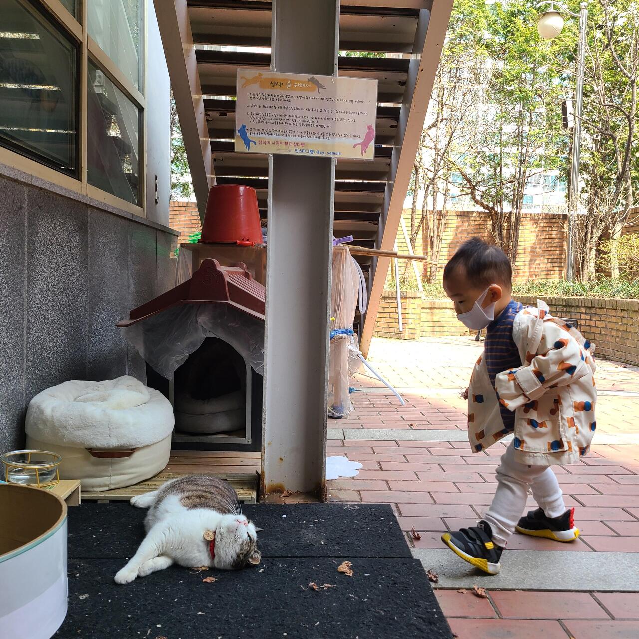 도서관에 사는 고양이와도 인사를 나누었어요.