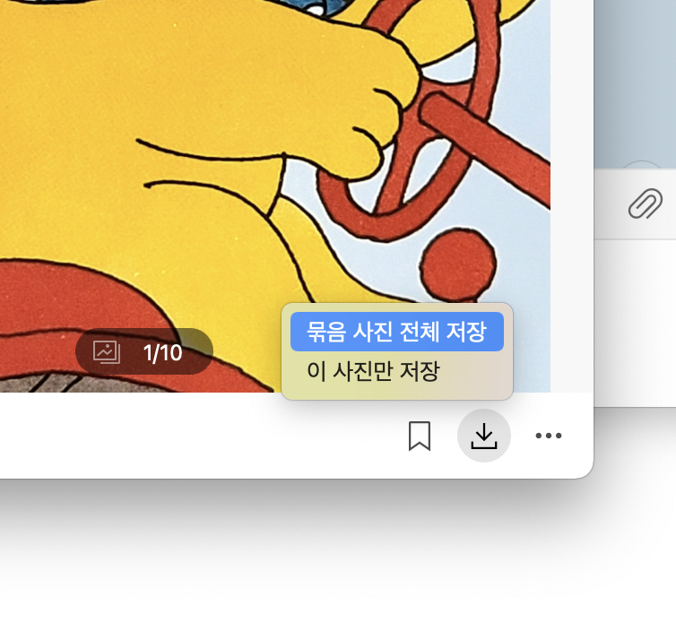 저는 카톡에 넣고 <묶음 사진 전체 저장>을 했어요.