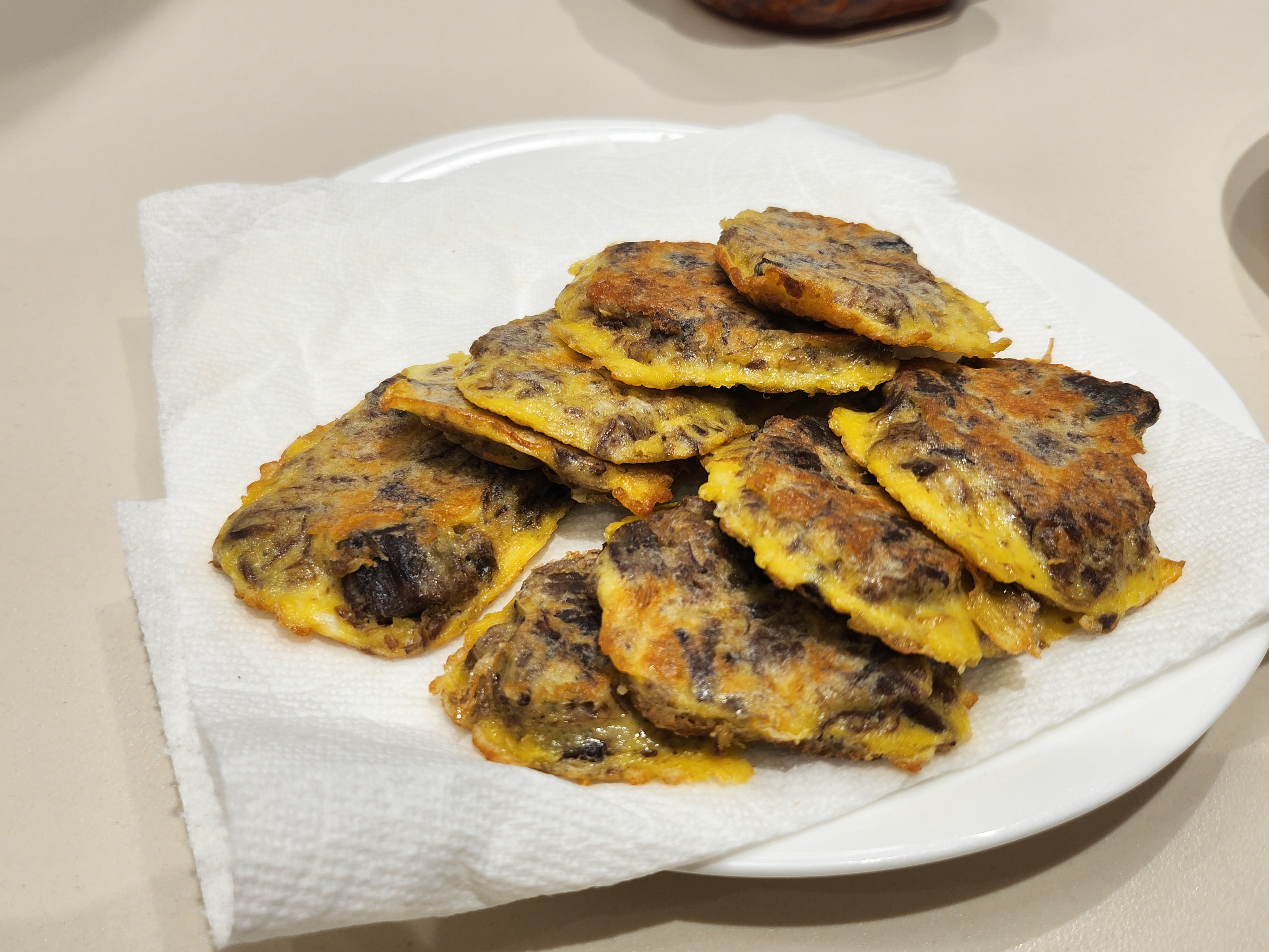 계란3개+밀가루+소금 약간 해서 섞어 동그랑땡 빚듯이 구웠어요.