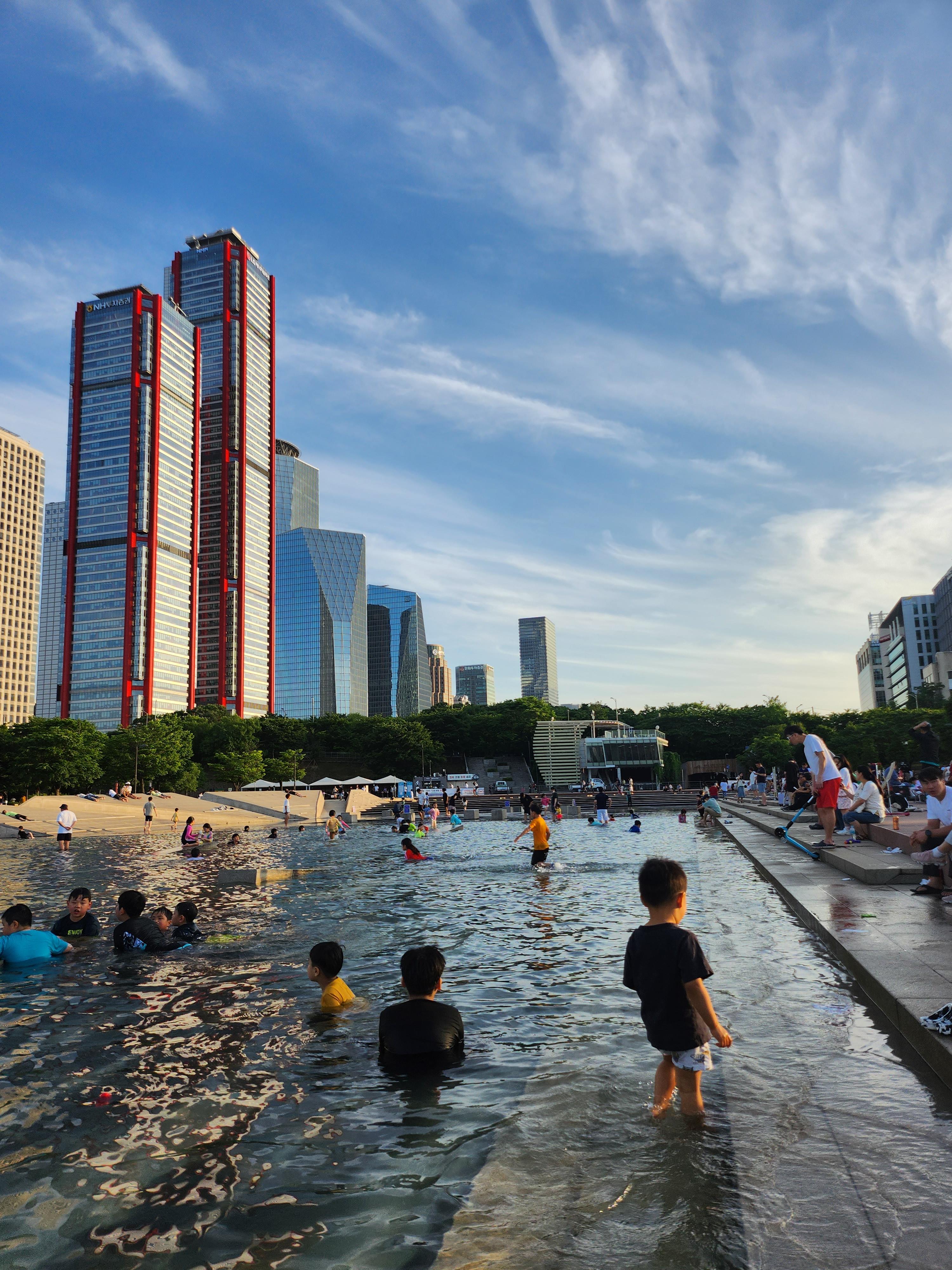 풀장이 아니라 말그대로 땅바닥(?)에 물을 들이부은 거니까 행여나 발이 다치지 않을까 걱정은 좀 돼요.