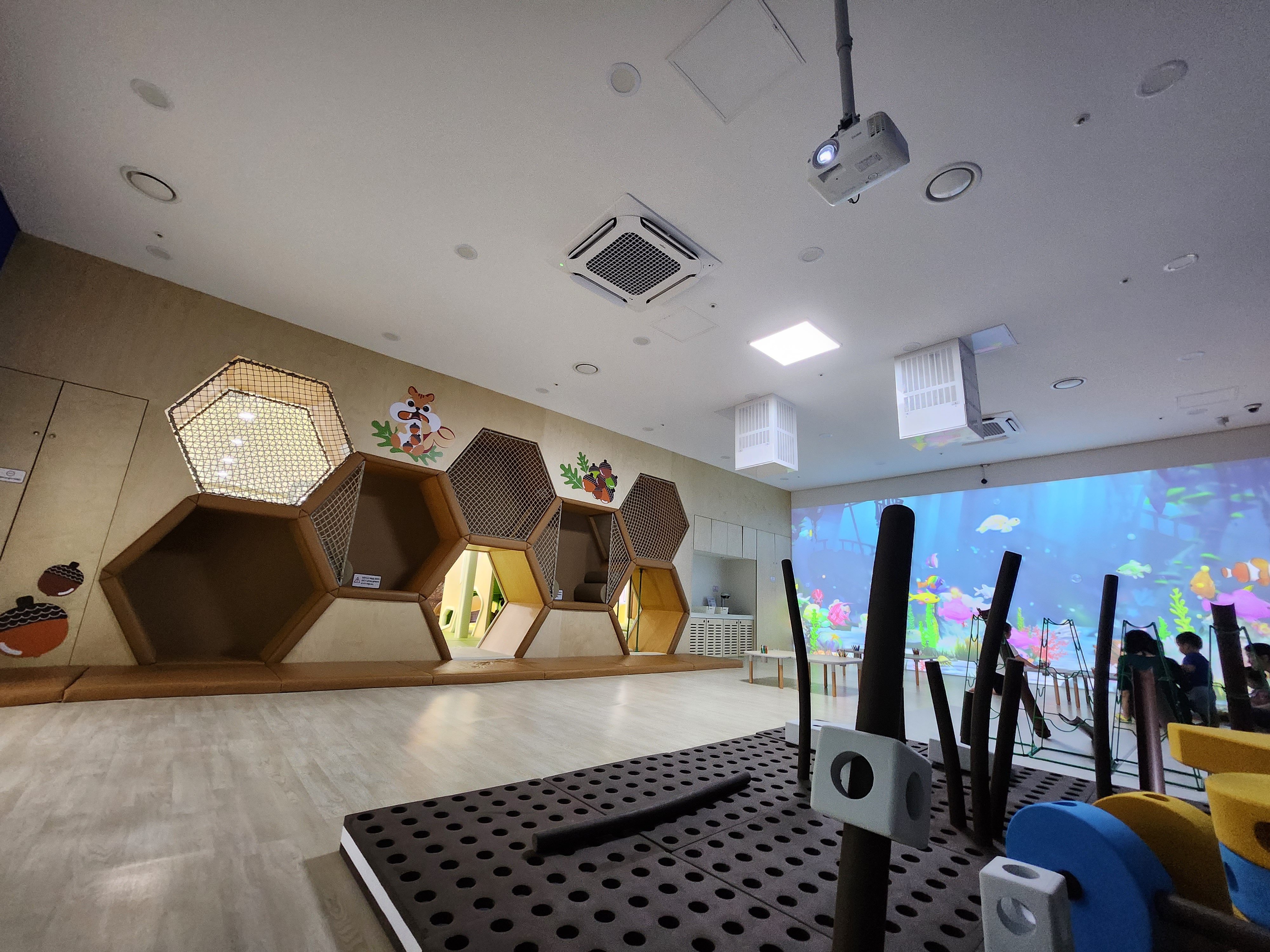 이곳은 영상 없어요! 대신에 벽면에 디지털 스케치북과 터치월이 있어요.