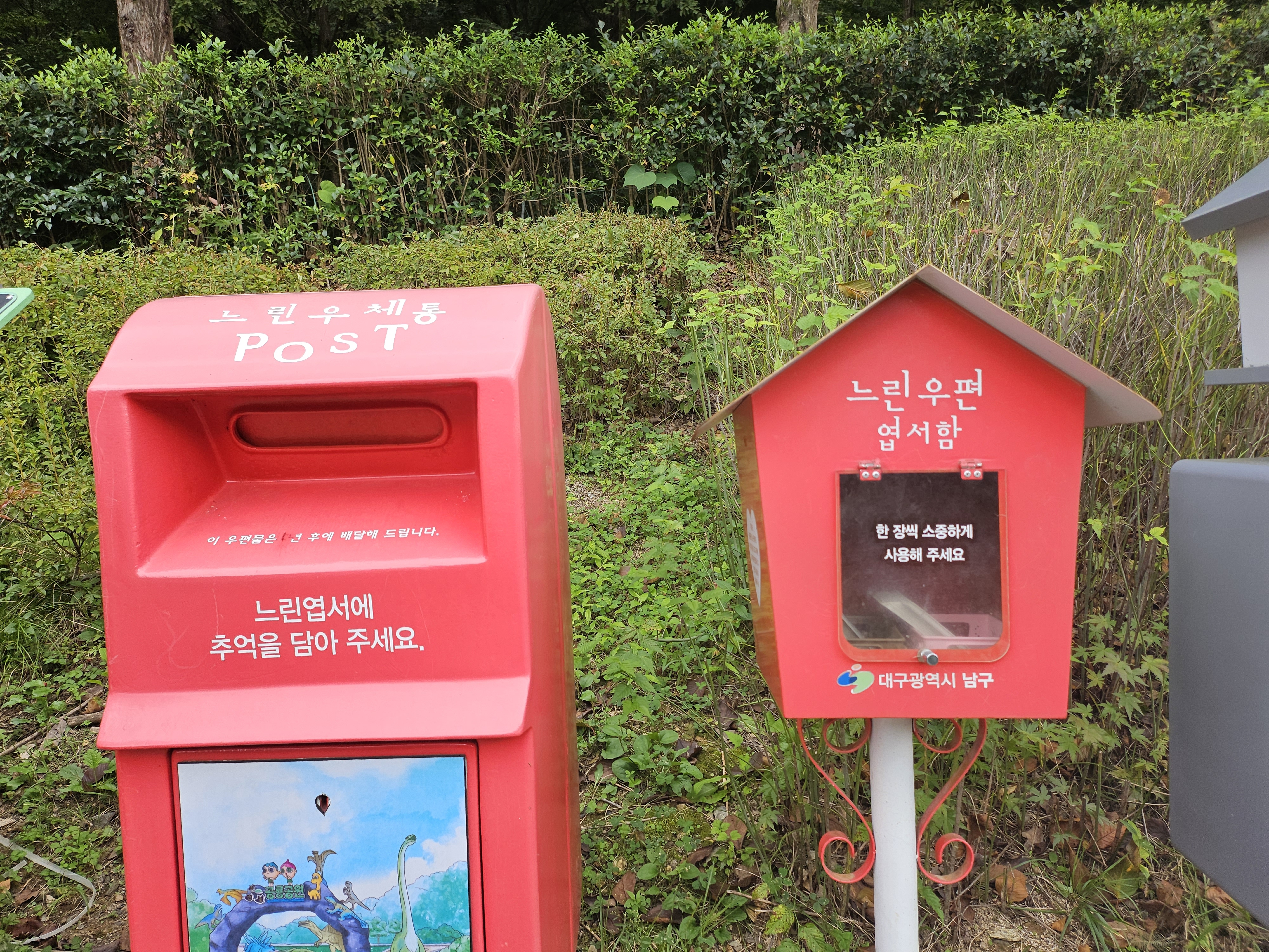 입구에 우체통이 있었는데 또리가 관심을 가져서 엽서쓰기를 해보았어요.