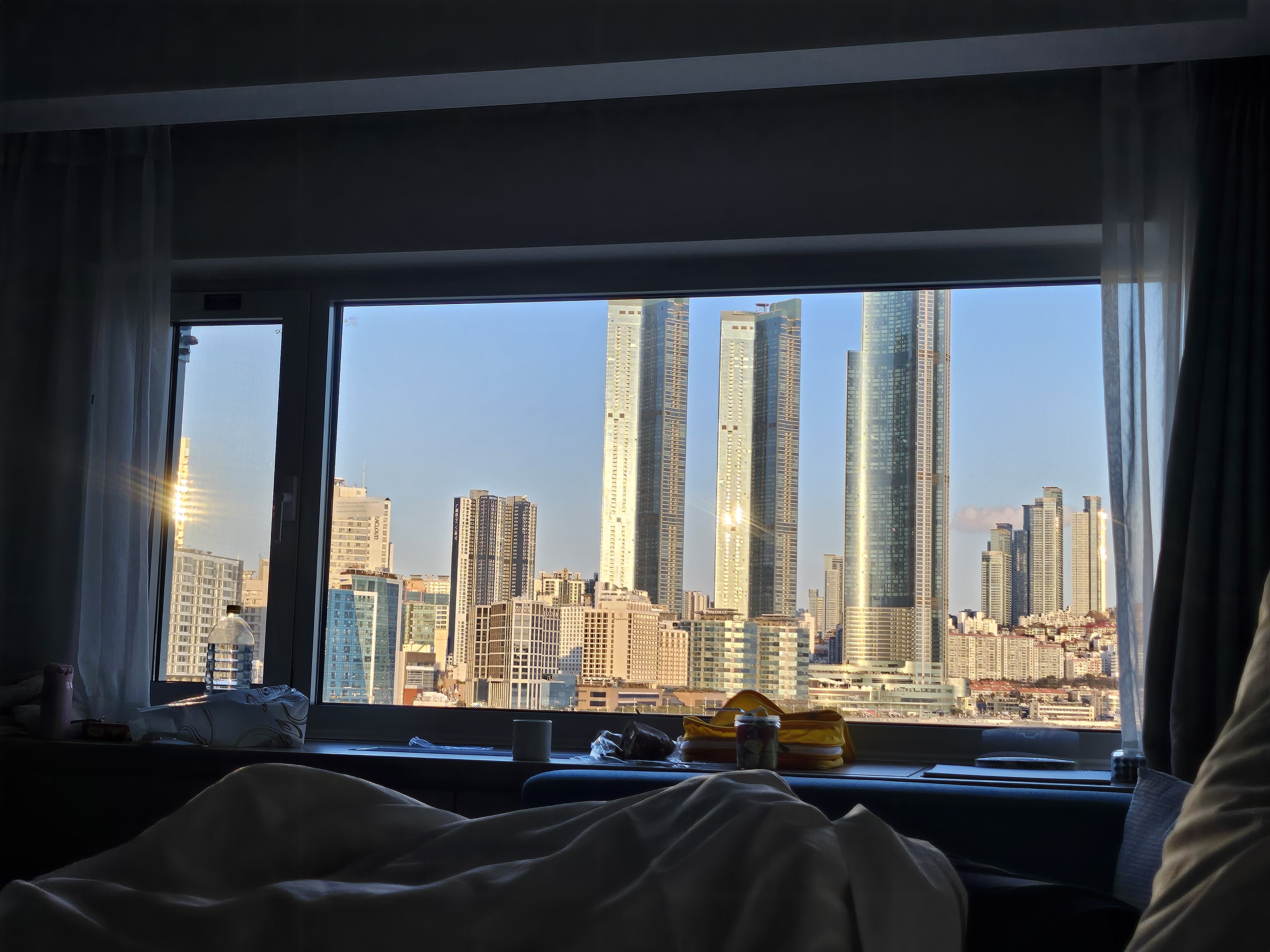 해운대 뷰를 감상하면서 모닝 커피 한 잔을 하려고 했었는데,
