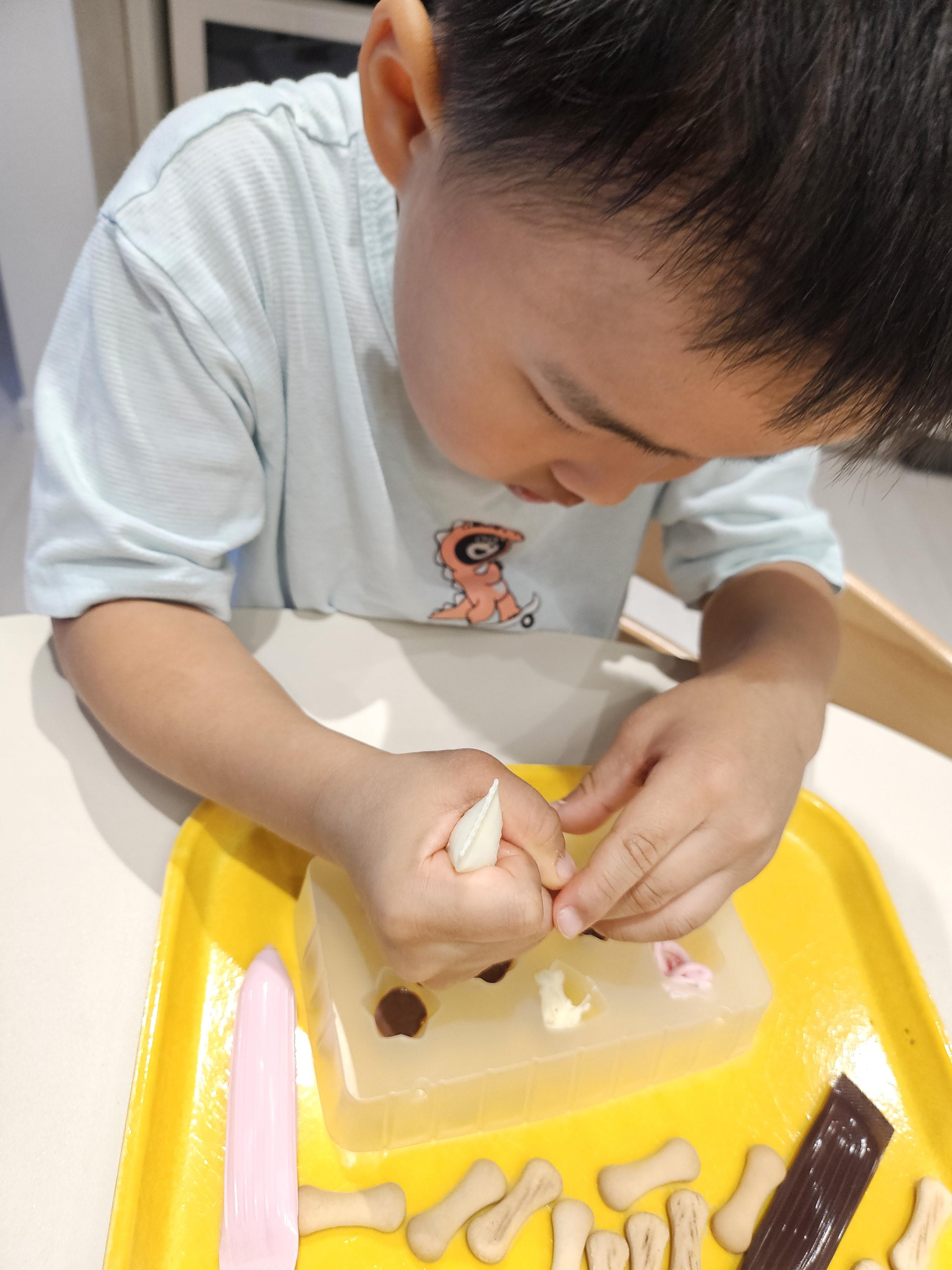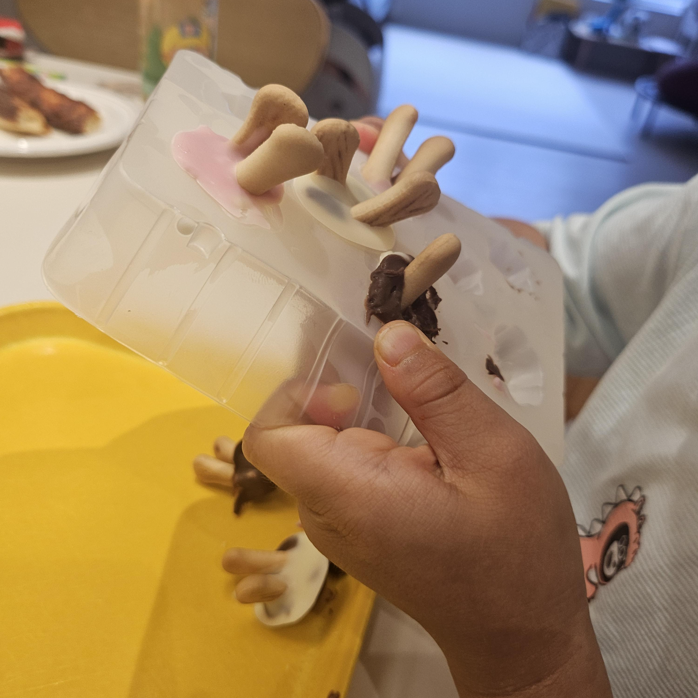 하나는 초코송이 만들기고, 또 하나는 쿠키에 아이싱인지 초코인지를 올려 그린 후 먹는 것 같아요.