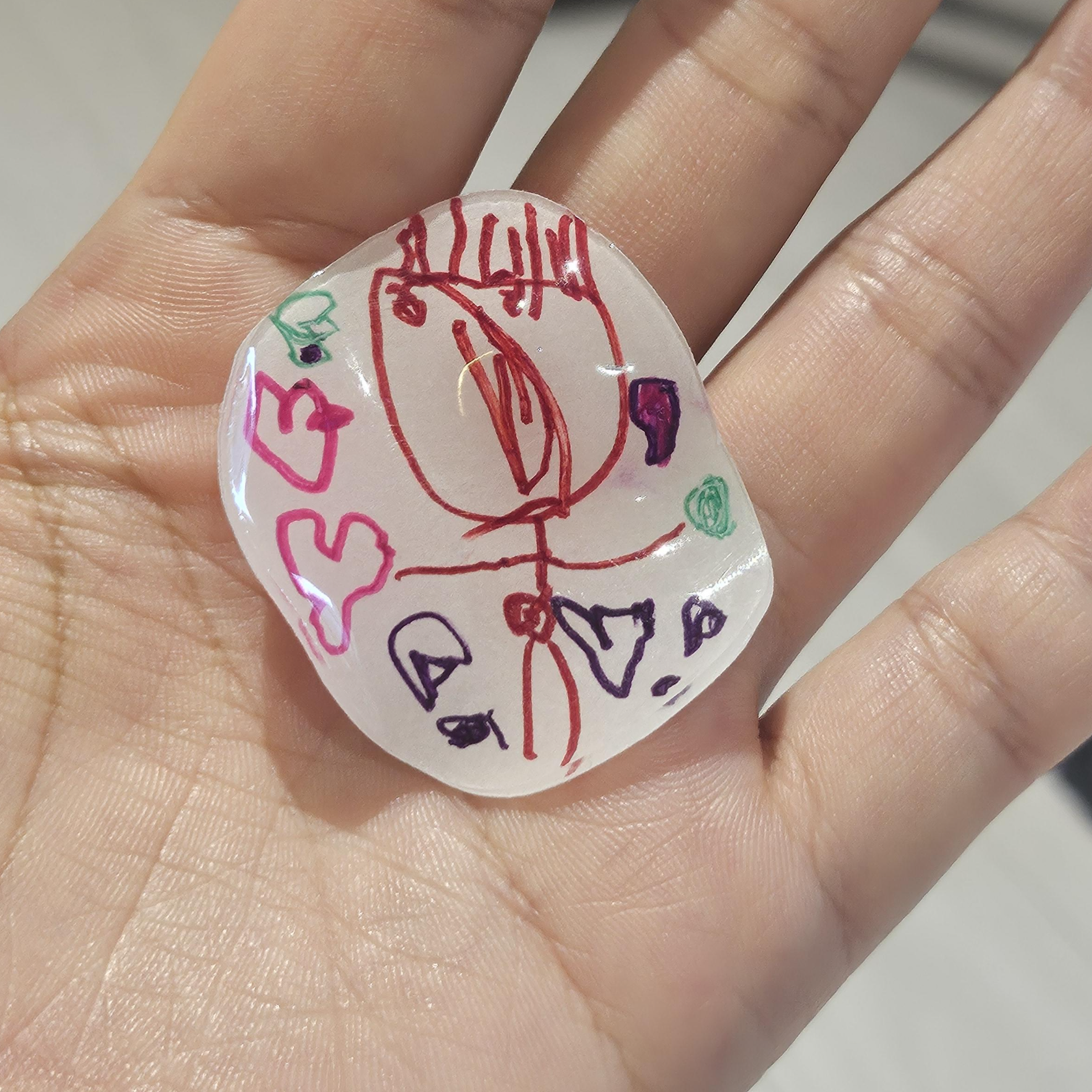 이때, 왁스 재질인 크레파스나 색연필은 열에 달궈지면 녹기 때문에 사인펜이나 마카 종류로 그려주세요.
