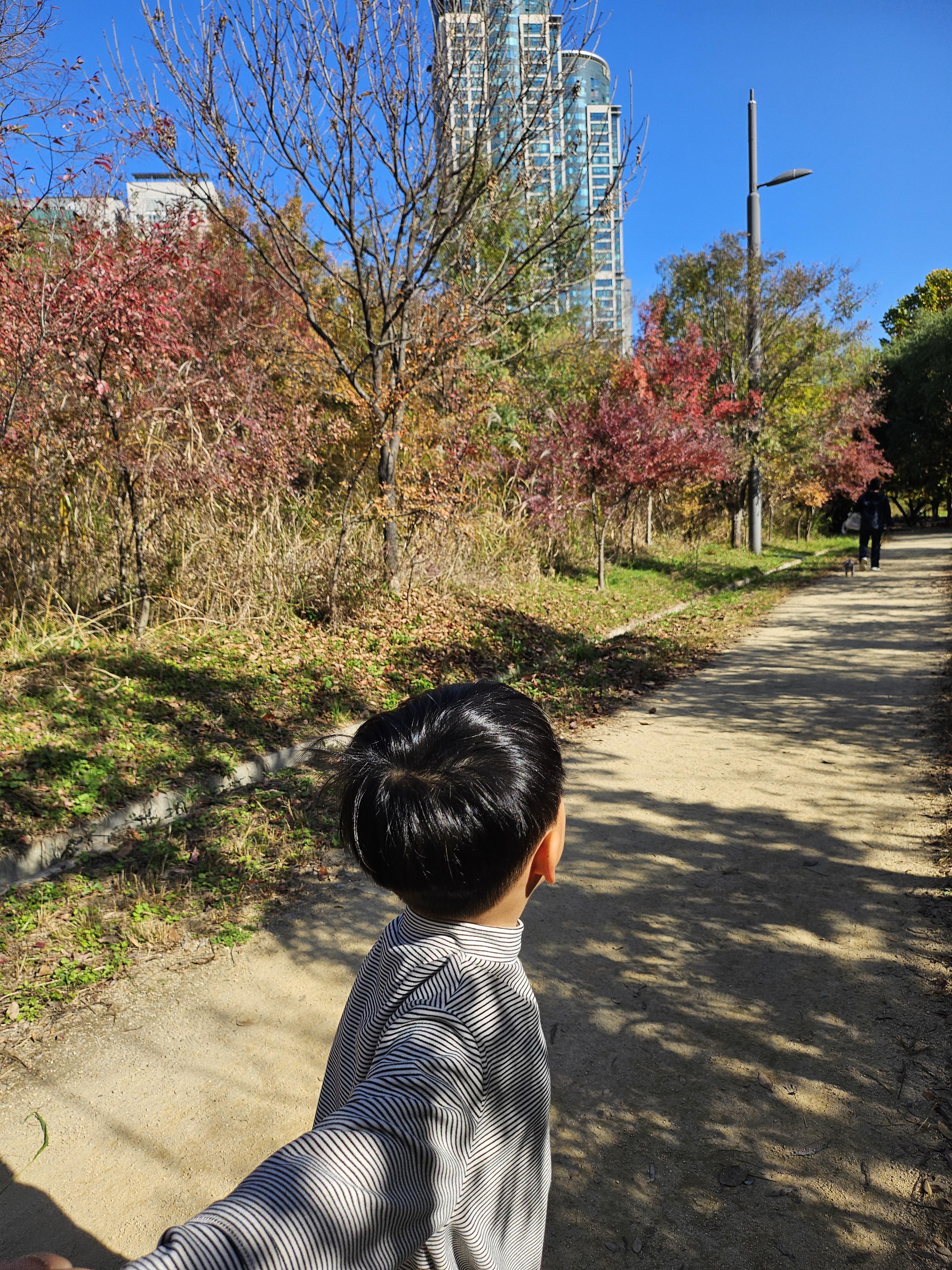 나무 아래를 걷다 보면 단풍이 우수수 떨어지기도 해서, 아이와 단풍잎을 줍고 놀아봅니다.
