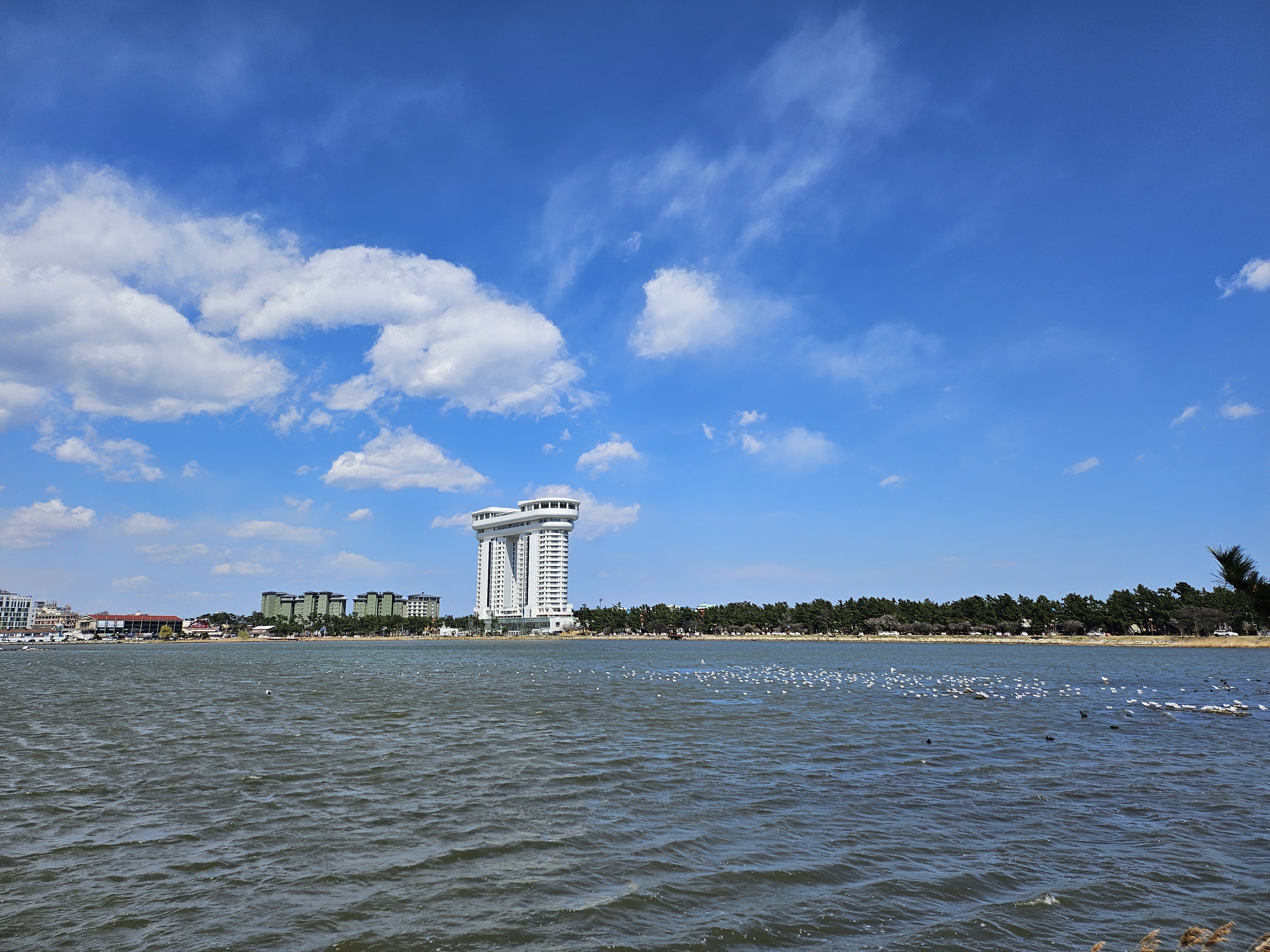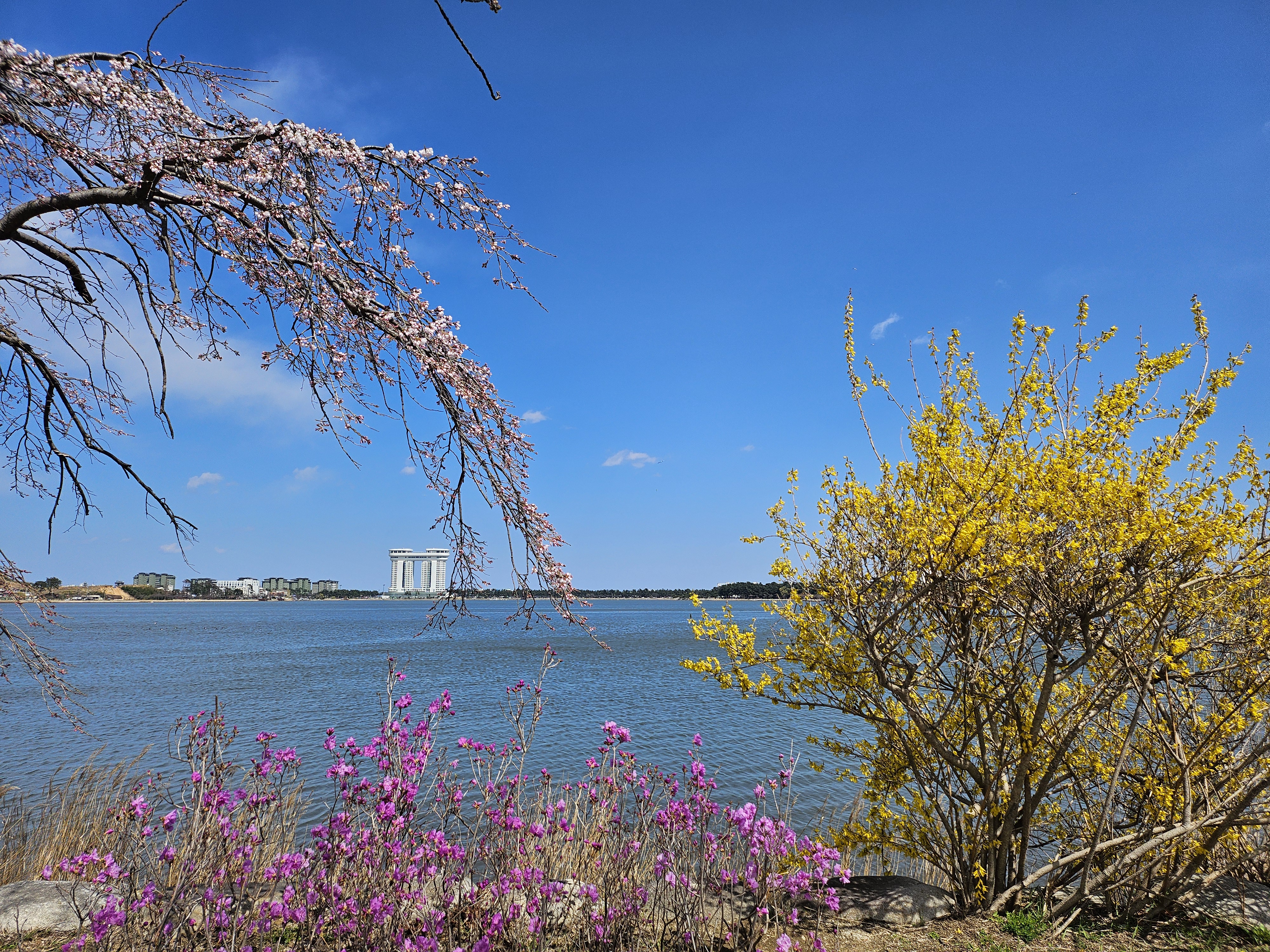 앞은 호수고 뒤는 바다니, 잔잔한 호수와 탁트인 바다를 한 번에 느낄 수 있는 곳이에요.
