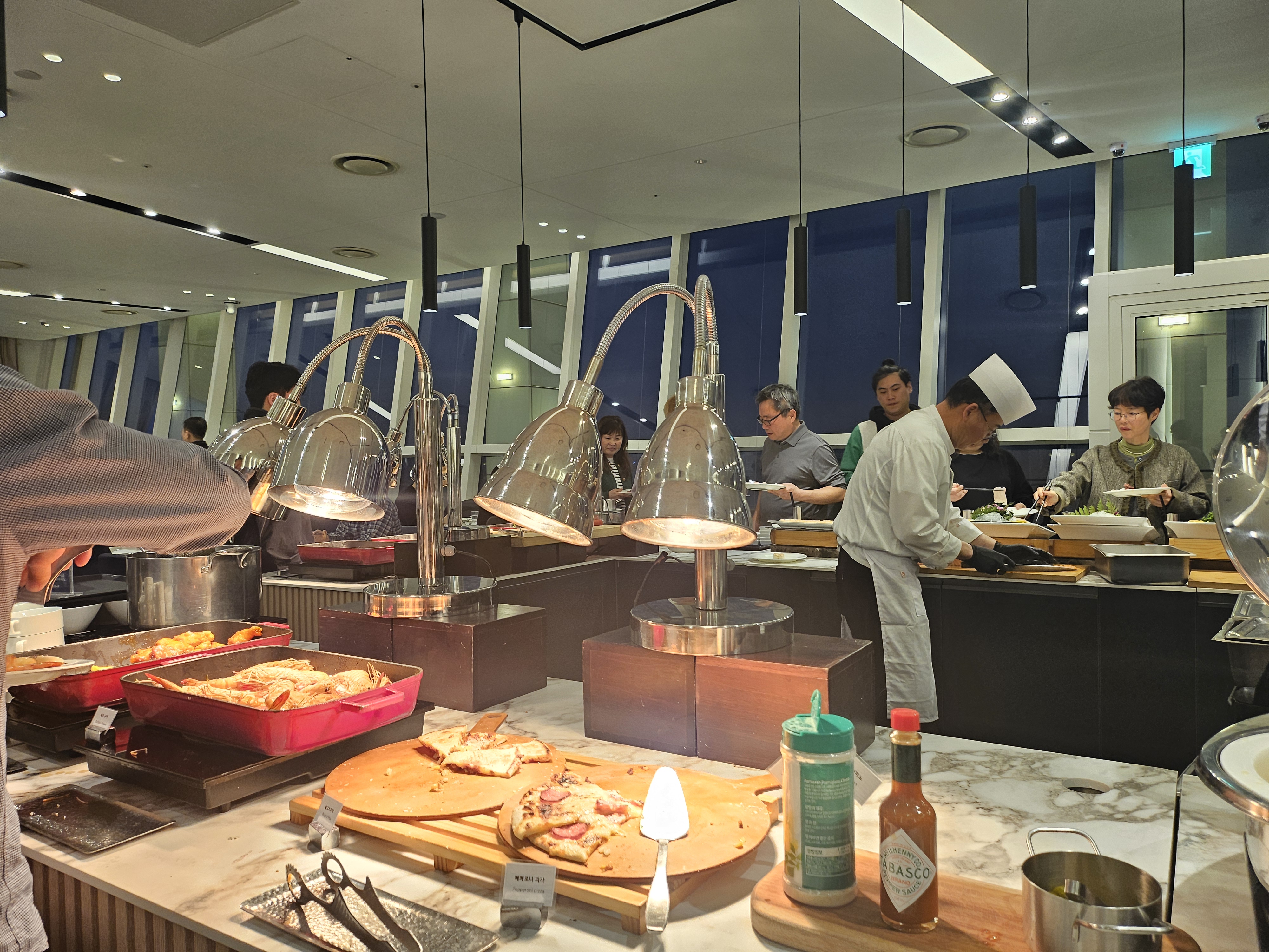 저녁 뷔페를 먹었던 20층에 있는 레스토랑은 자리는 많았으나 뷔페의 규모는 작은 편이었고