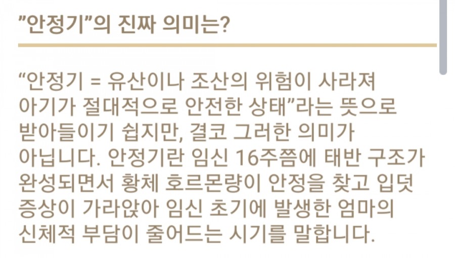 임신초기의 증상들이 사라지며 신체적인 부담이 줄어드는 시기라고.