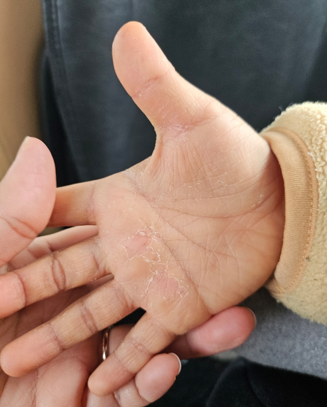 점점 더 퍼져서 두 발 두 손바닥 전체 껍질이 벗겨졌어요.