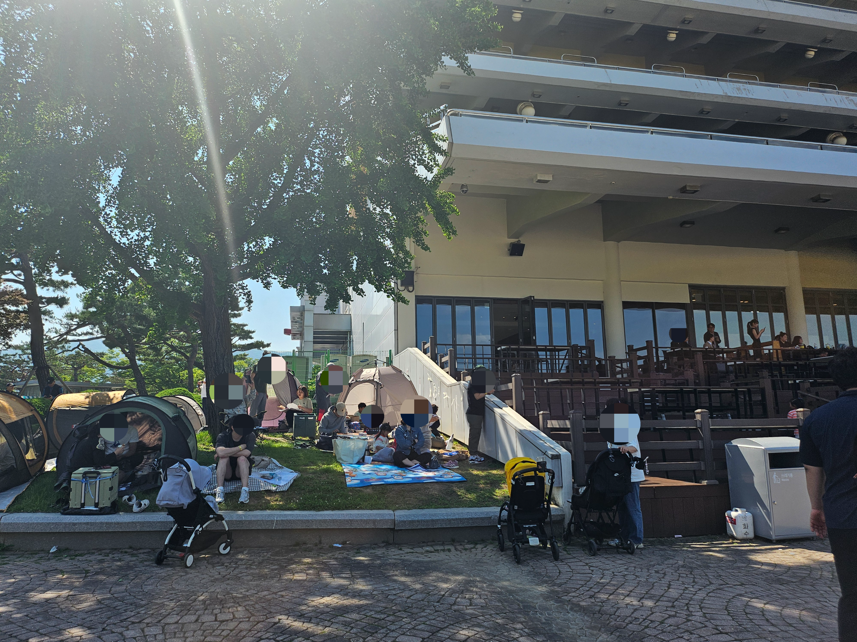 경기장 바깥쪽에 있는 작은 공간에 사람들이 텐트 치고 돗자리 펴고 있더라고요.