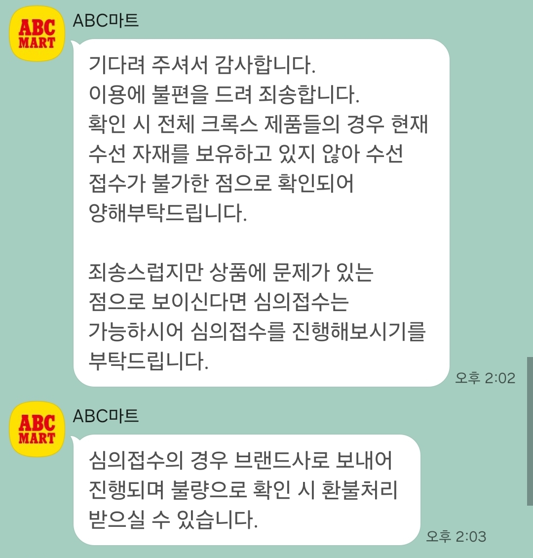 네.. ABC마트에서 구매한 크록스는 AS가 불가합니다. 아니 '수선접수'가 불가하답니다.