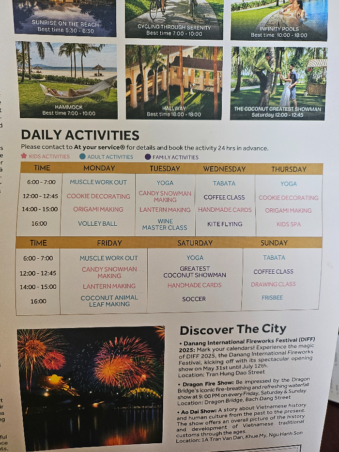 호텔 내의 프로그램이 매일 다르게 있어요.
