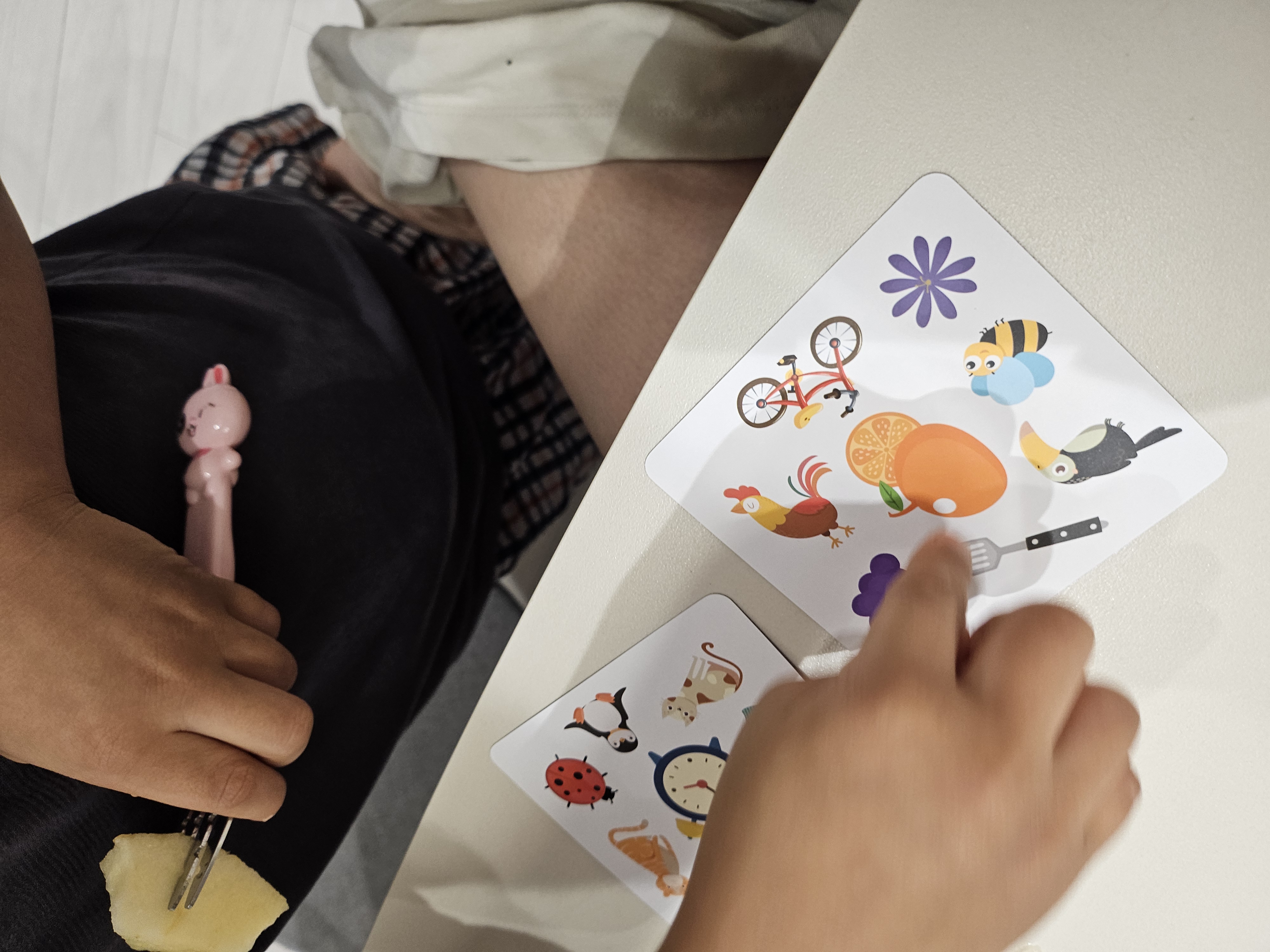 카드를 한 장씩 뒤집으며 같은 그림이나 단어가 나오면 먼저 단어를 외치는 사람이 카드를 가져가는 방식이에요.