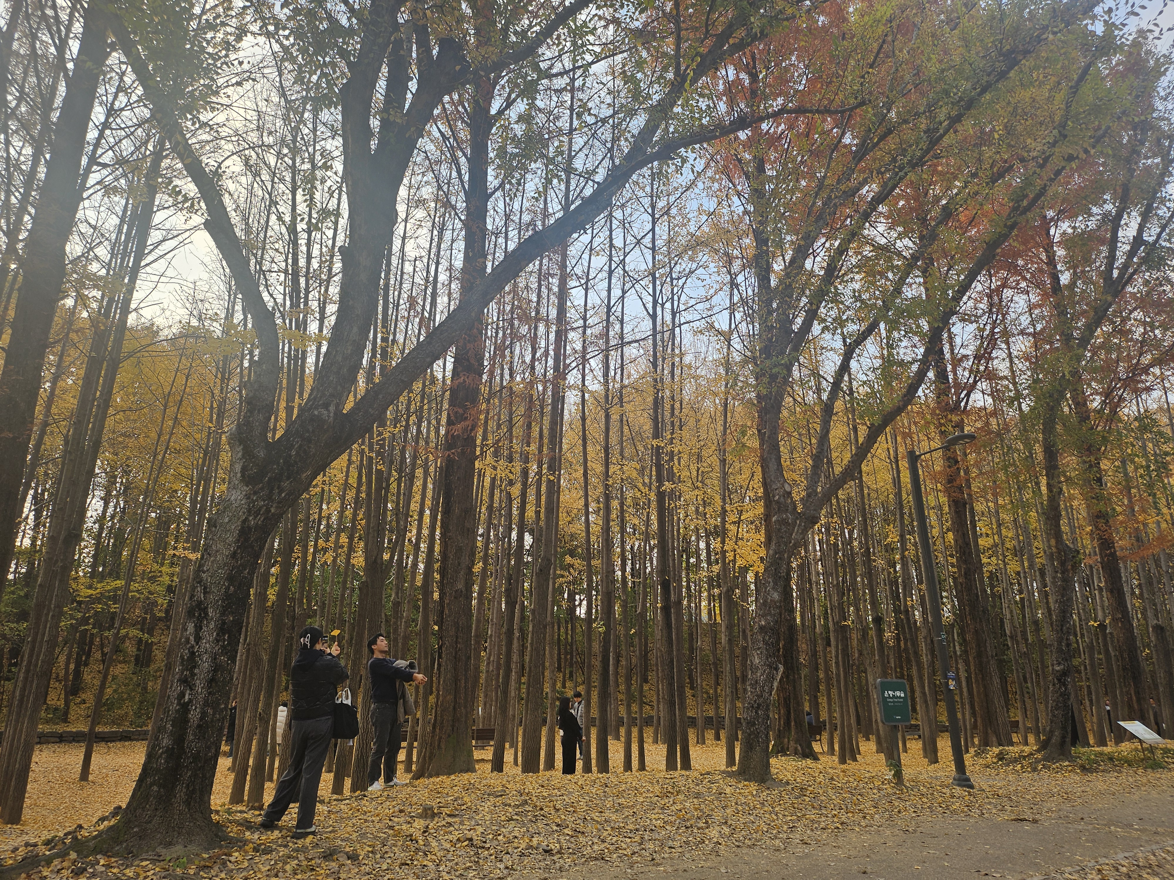 특히 바닥에 떨어진 낙엽과 은행잎들이 만들어 주는 색감이 정말 예뻤어요.